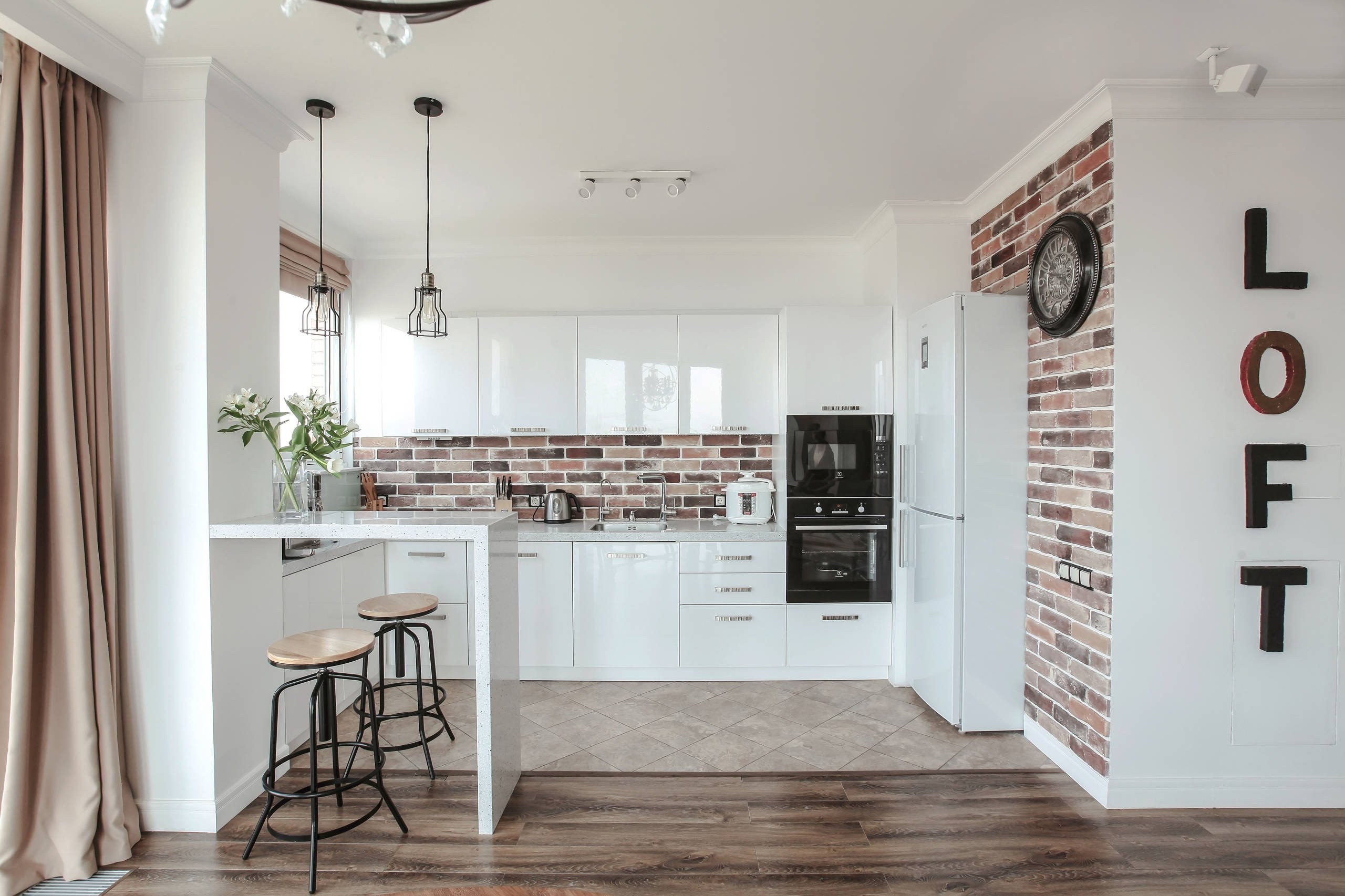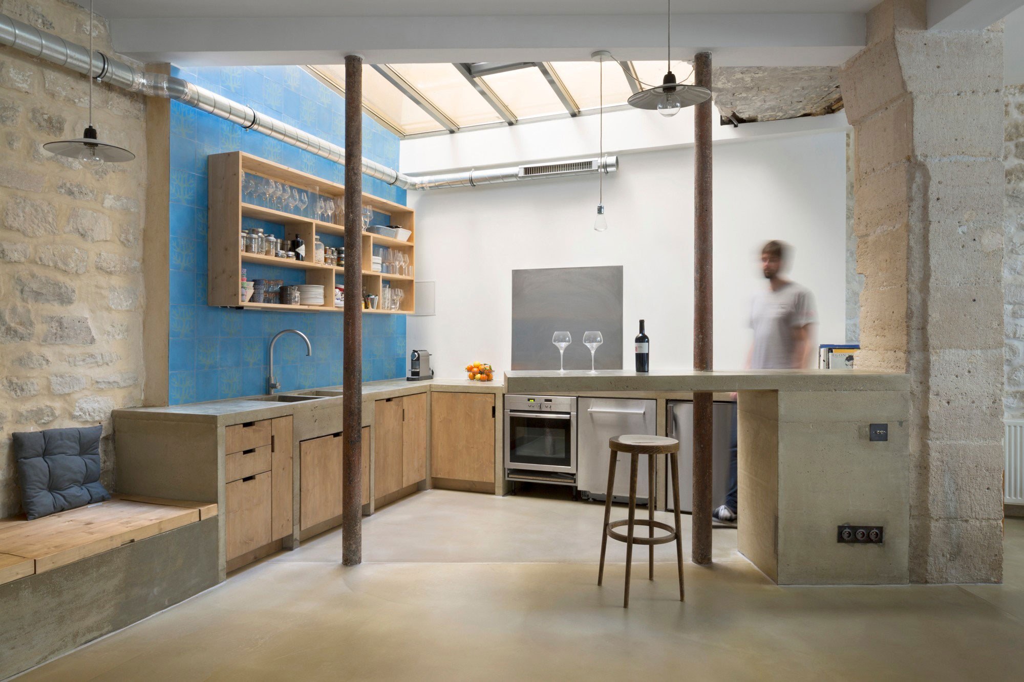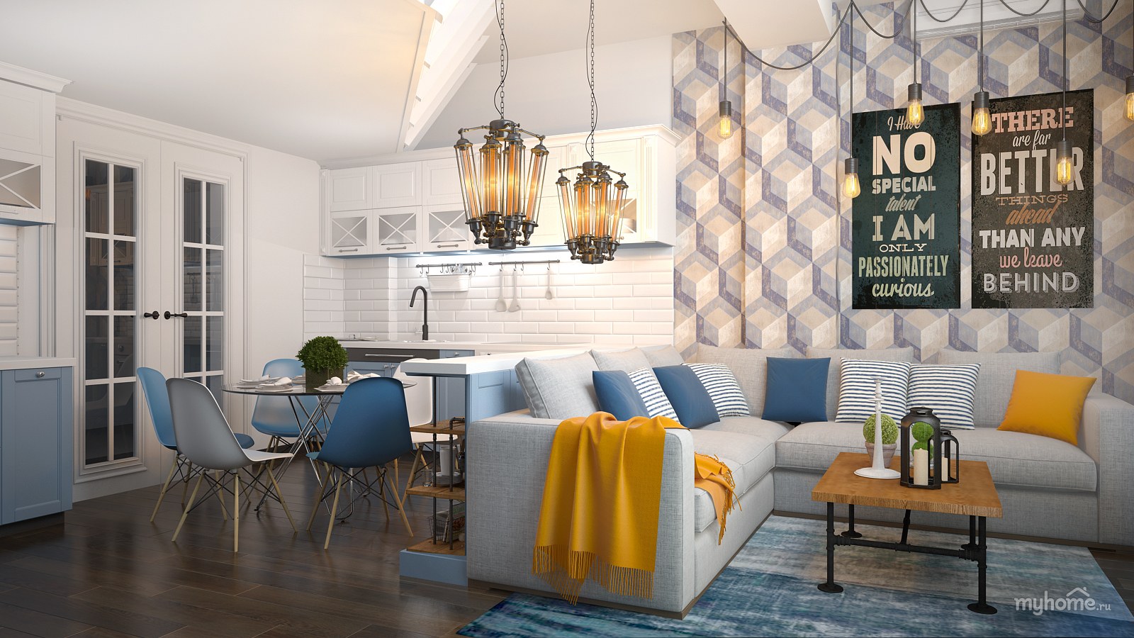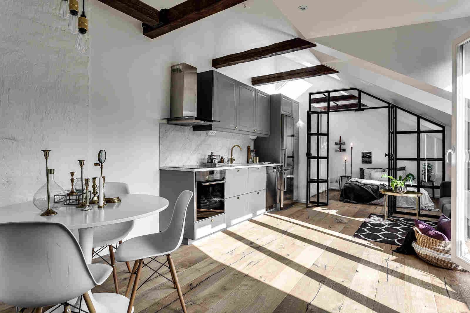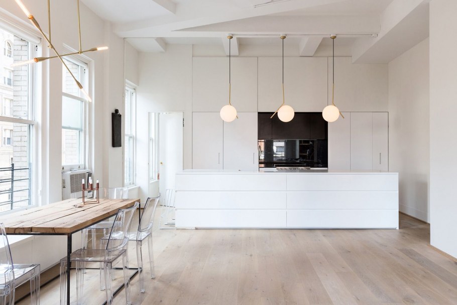 Кухня гостиная в стиле лофт светлая (47 фото)