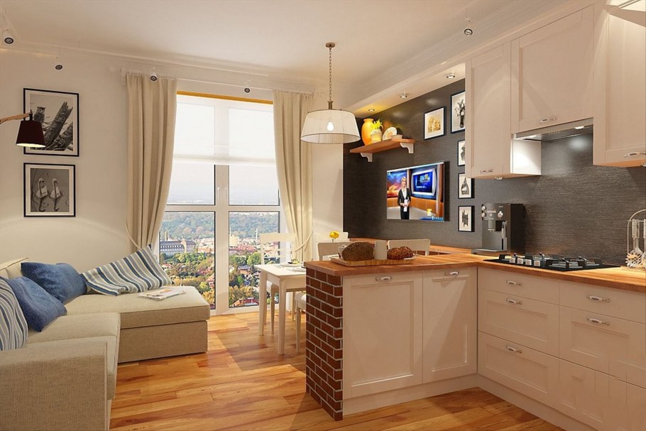Зонирование кухни в студии 30 кв.м