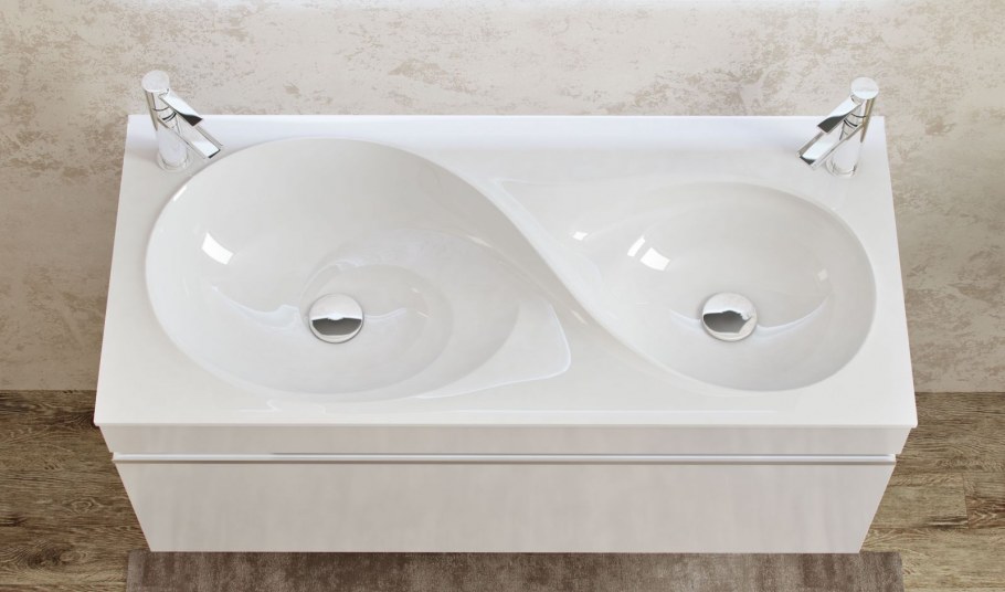 Тумба с двойной раковиной для ванной комнаты (39 фото)