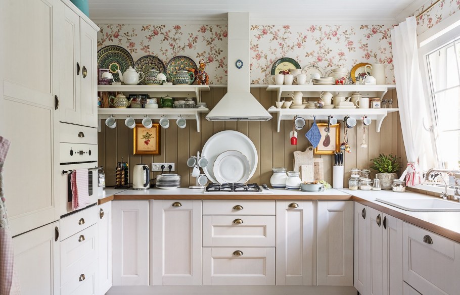 Кухня в стиле прованс в малогабаритной кухне деревянного дома (38 фото)