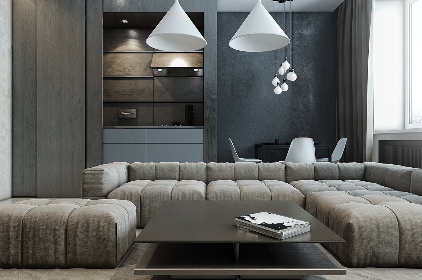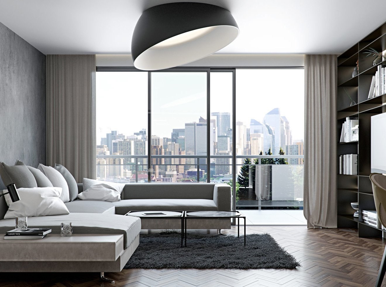 Серый цвет в интерьере гостиной