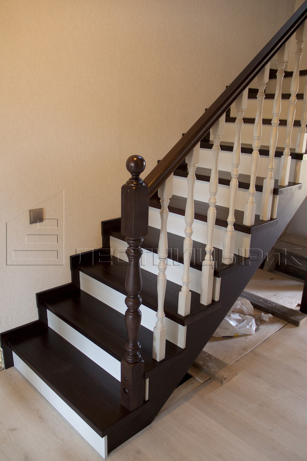 Лестница деревянная черно белая