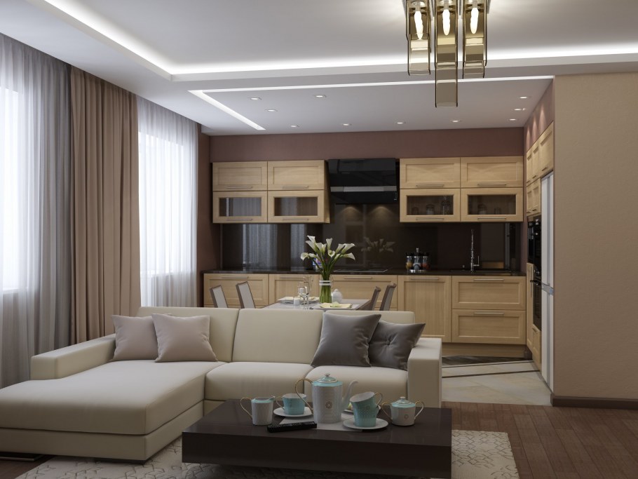 Ремонт гостиной совмещенной с кухней дизайн фото