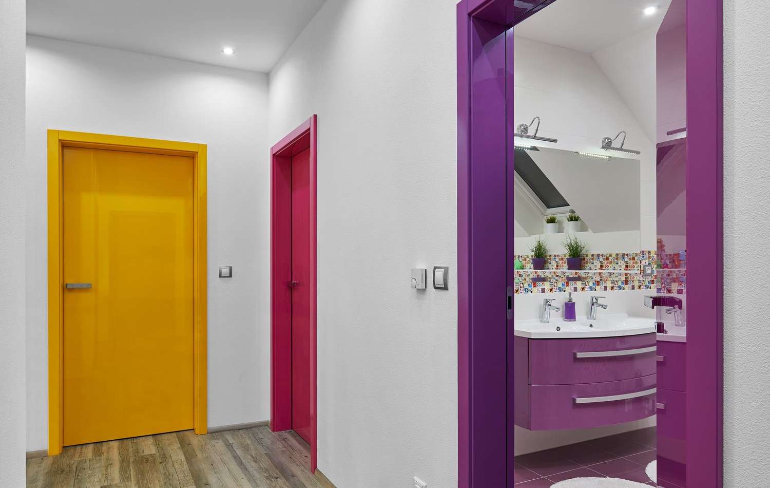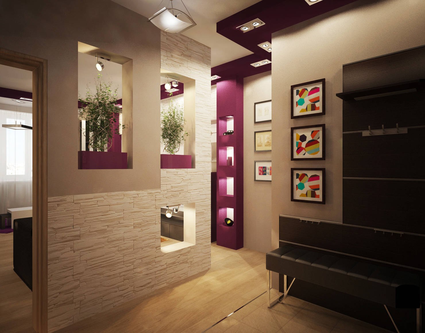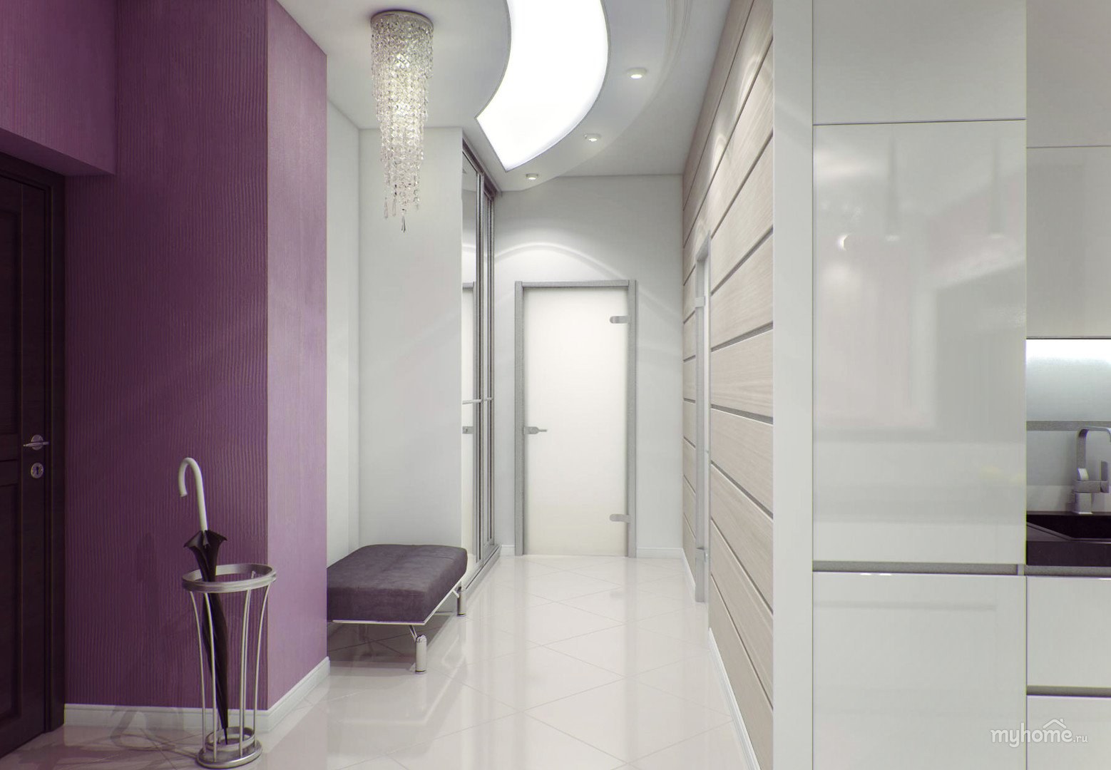 Дизайн коридор стена фиолетовый (37 фото)