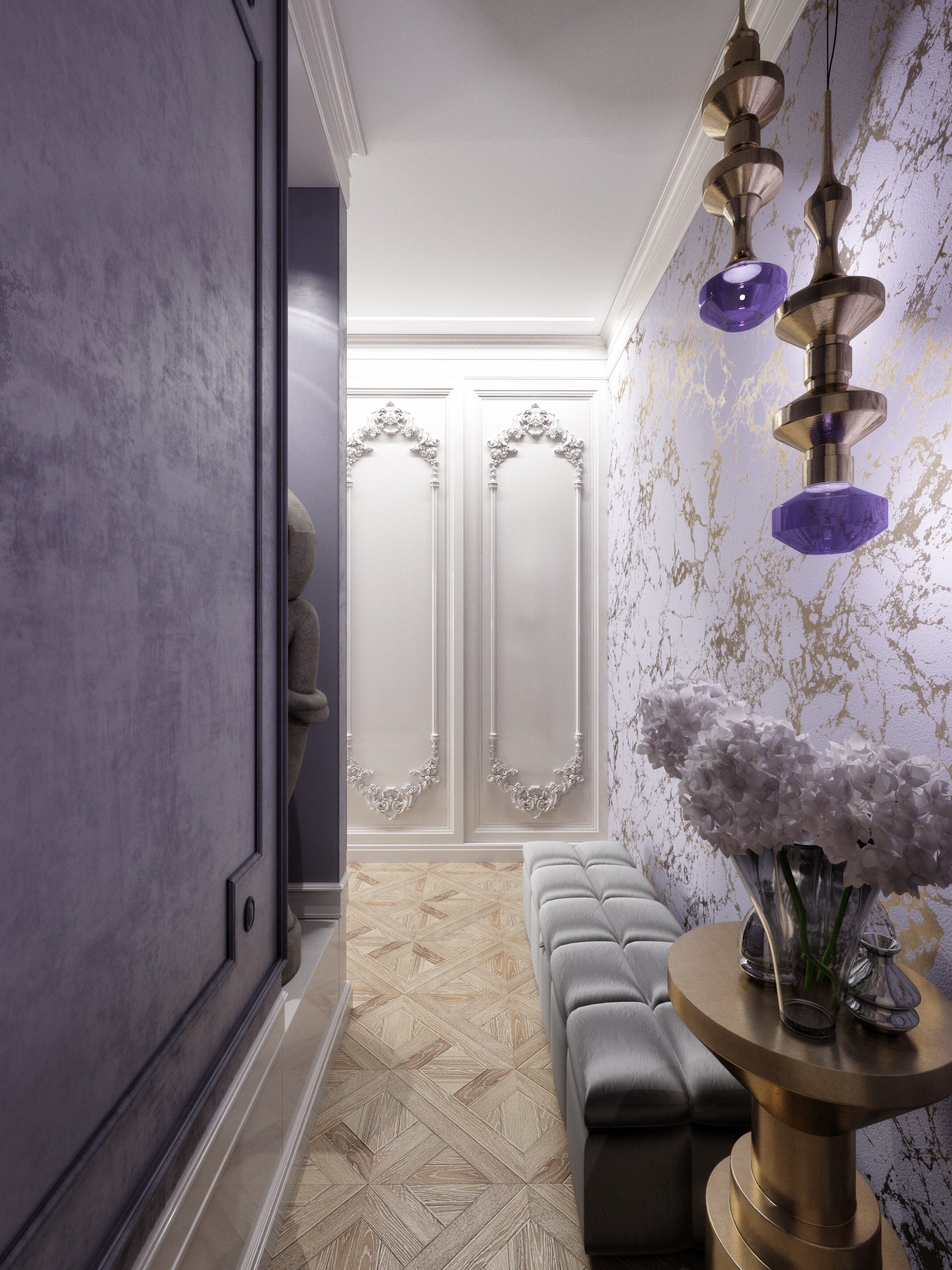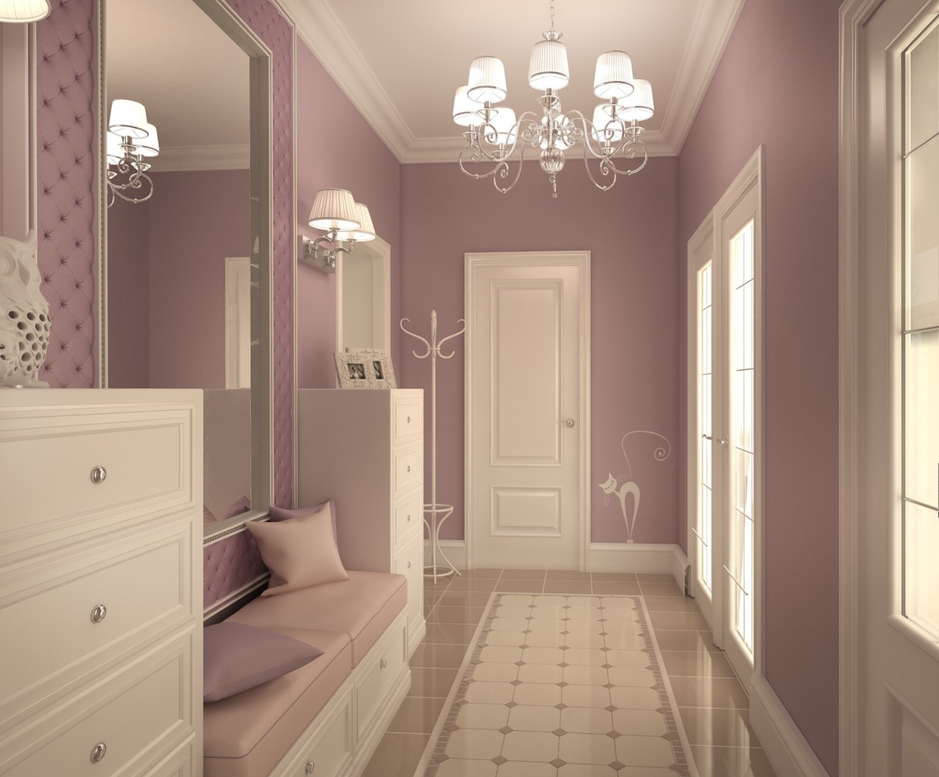 Лавандовый цвет в интерьере прихожей
