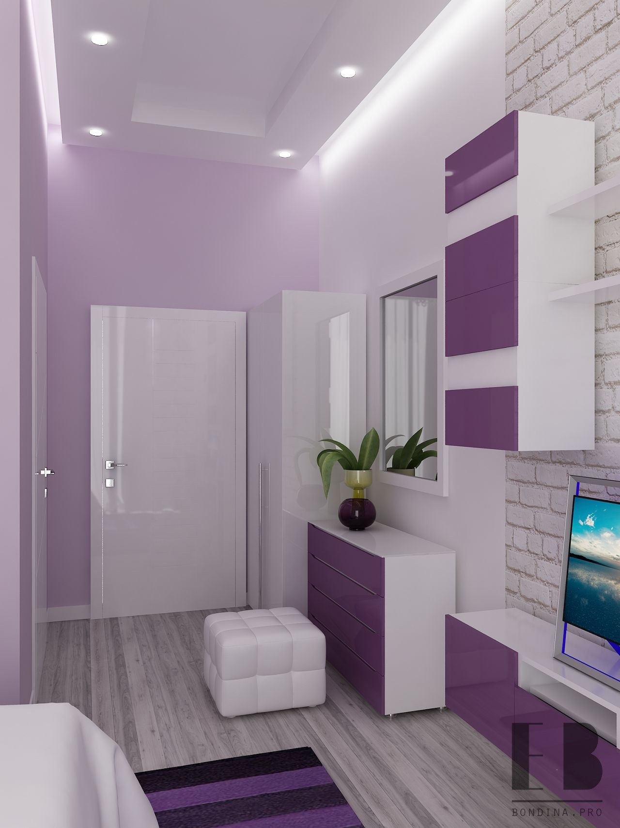 Комната в белом и фиолетовом цвете