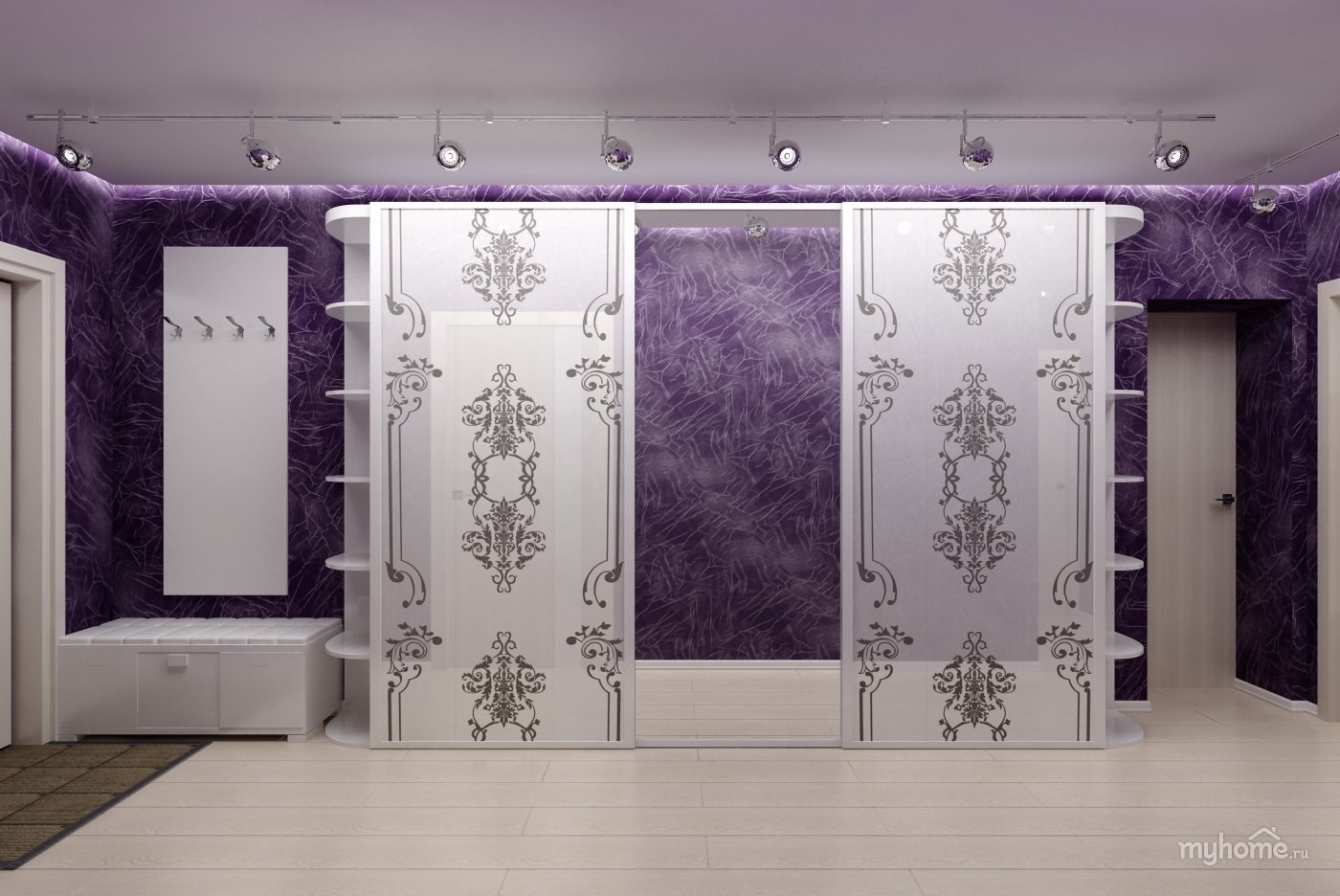Интерьер прихожей шкаф в сиреневом цвете