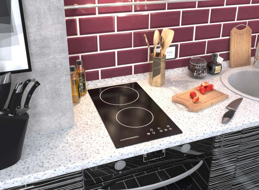 Бежевая варочная панель в интерьере кухни (58 фото)
