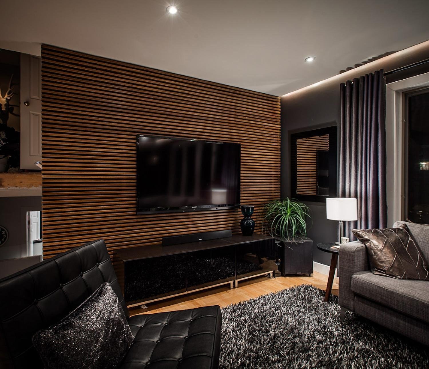Гостиная с темными стенами