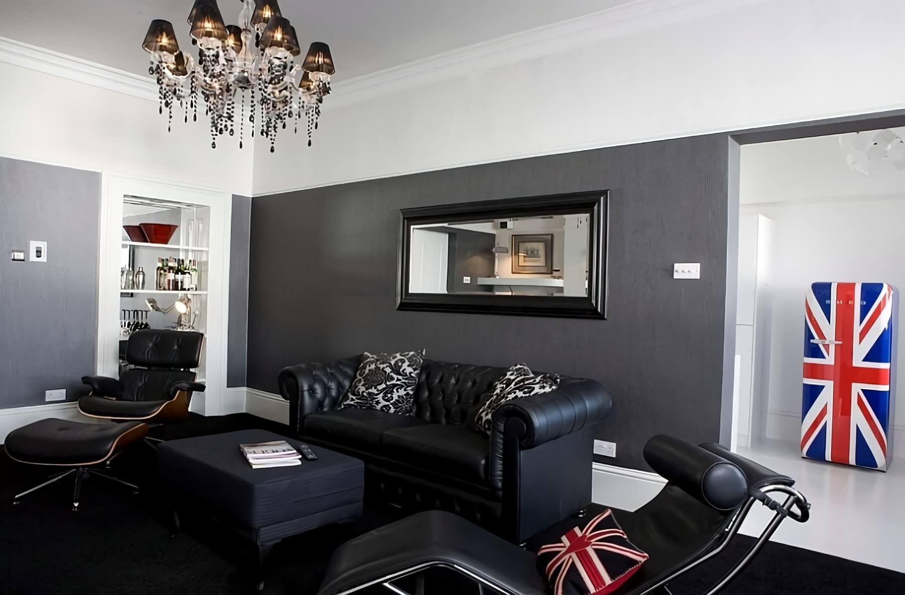 Черная мебель в интерьере гостиной