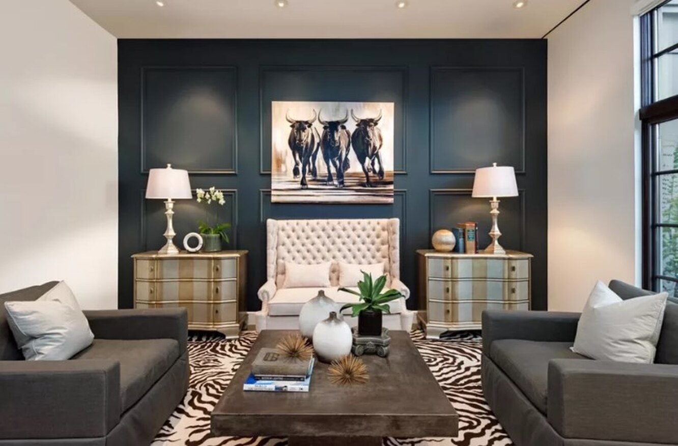 Темные стены в интерьере гостиной