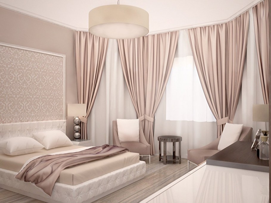 Спальня в пудровых тонах с белой мебелью (39 фото)