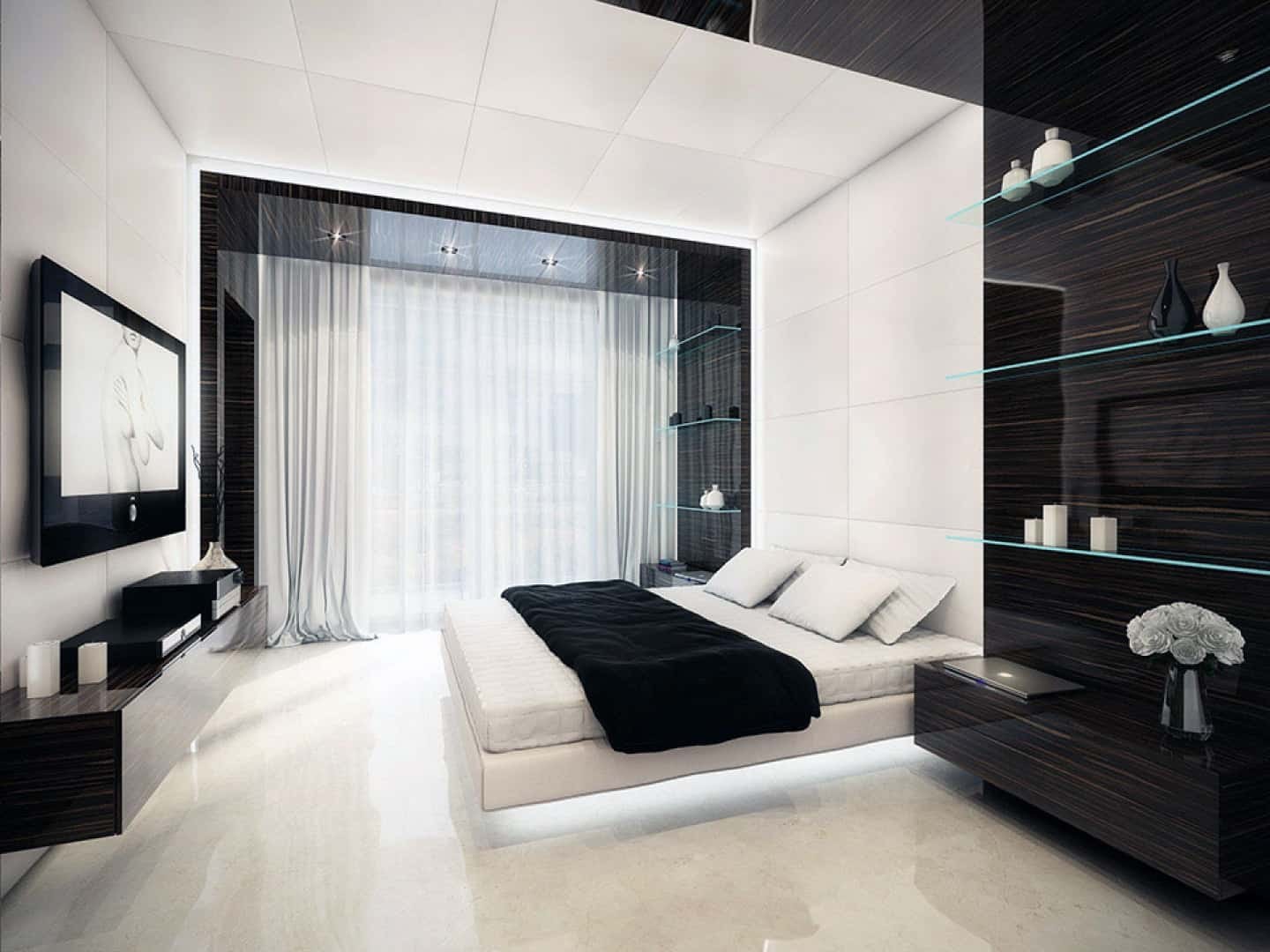 Спальня Хай тек темных тонах