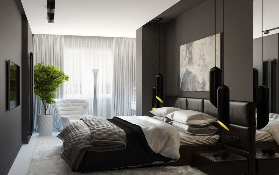 Дизайн комнаты для мужчины в темных тонах в современном стиле