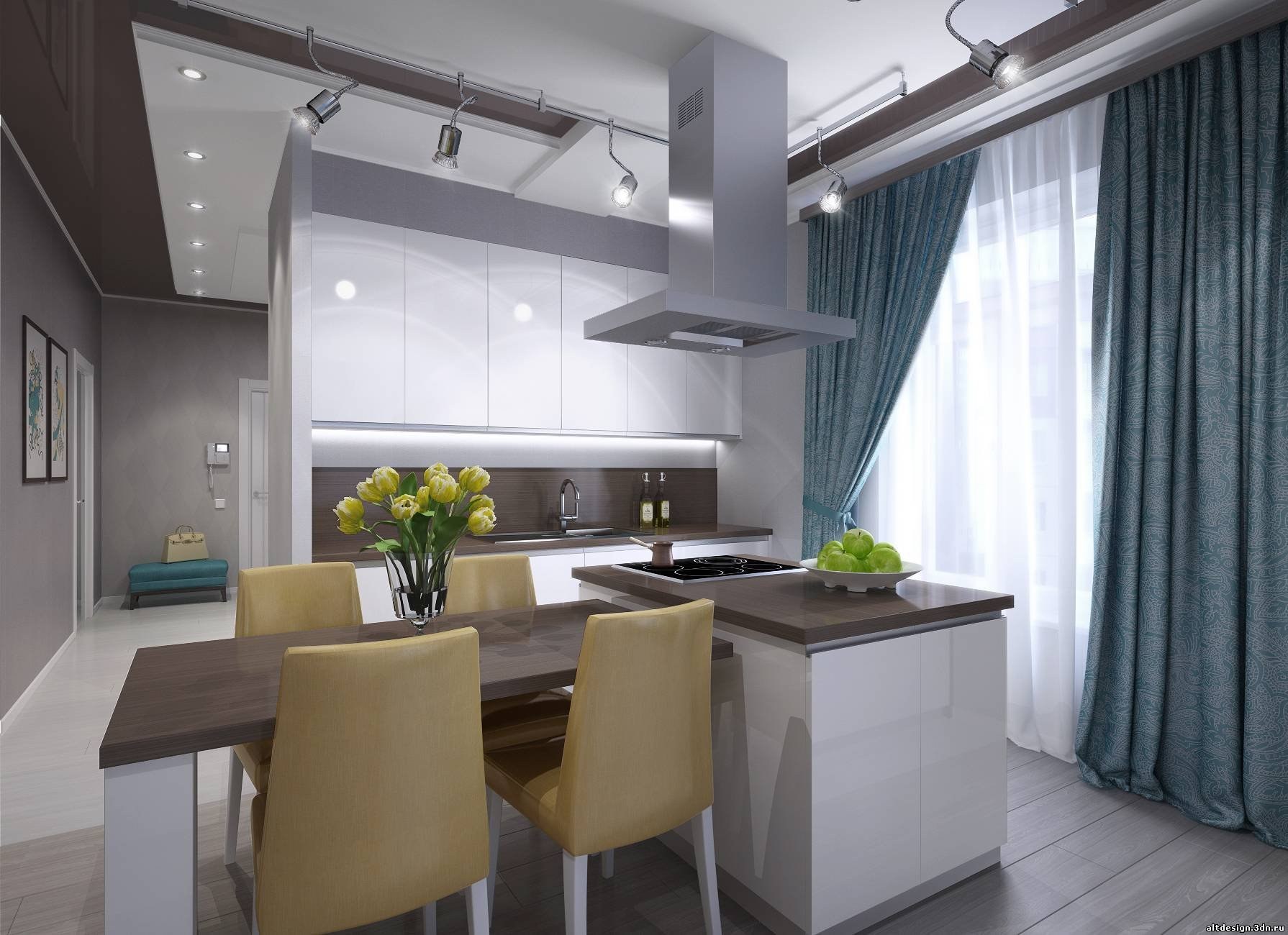 Проходная кухня гостиная