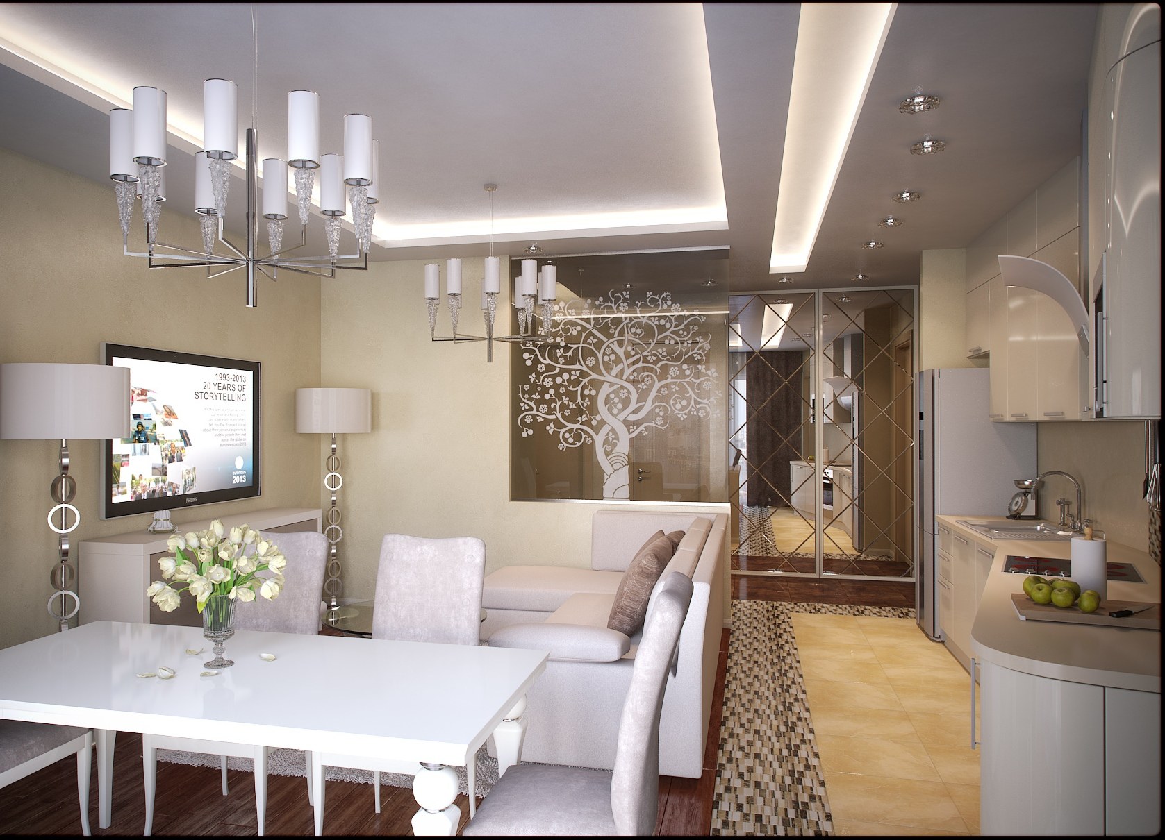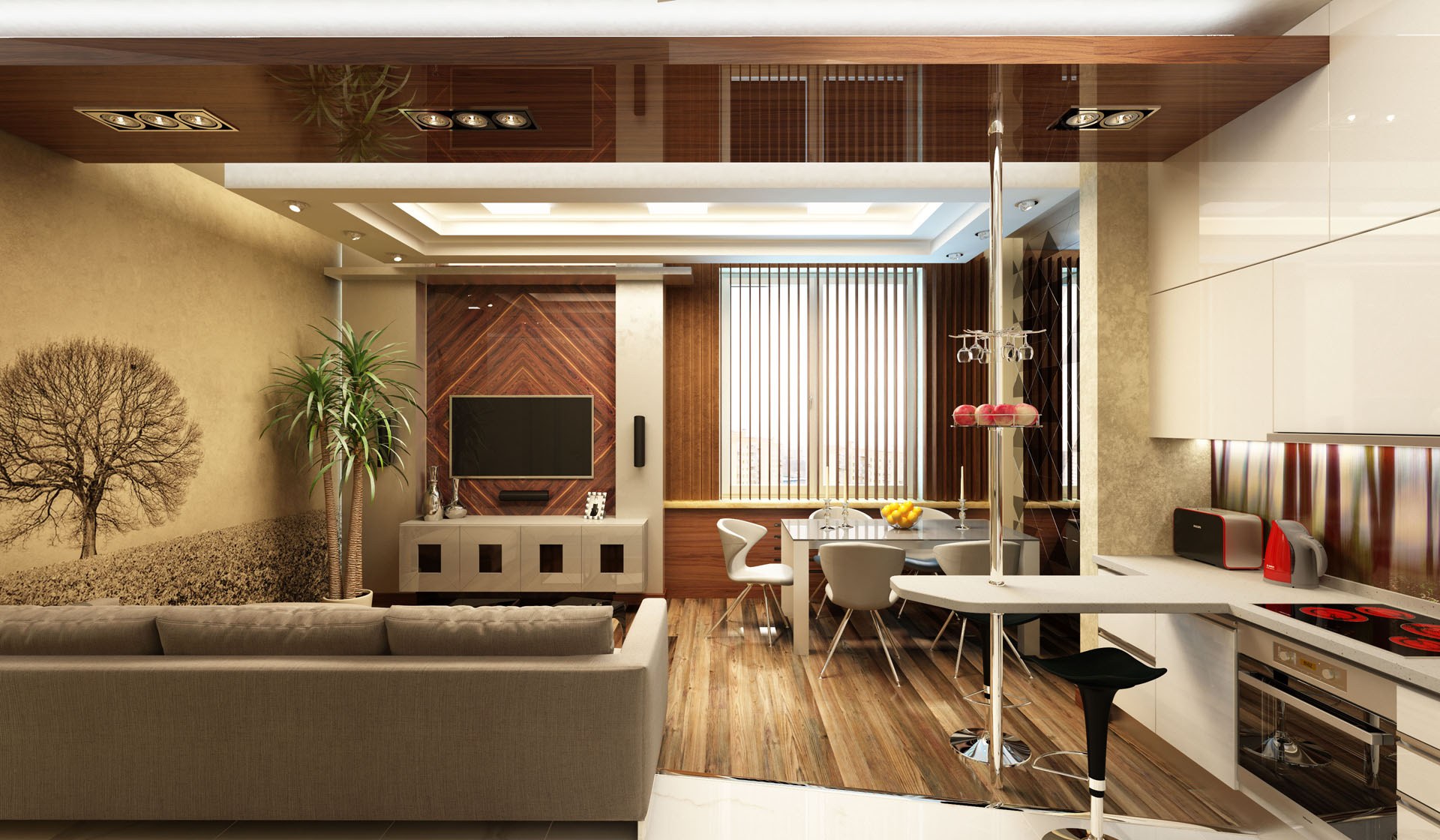 Кухня-гостиная потолок арт деко