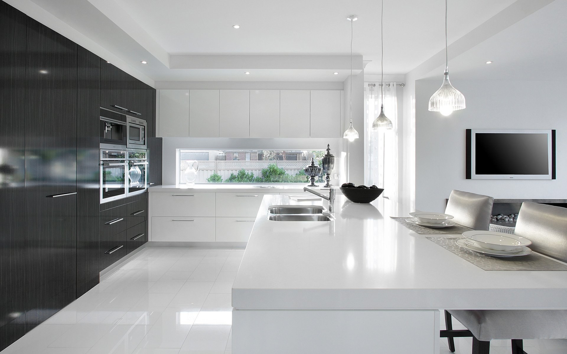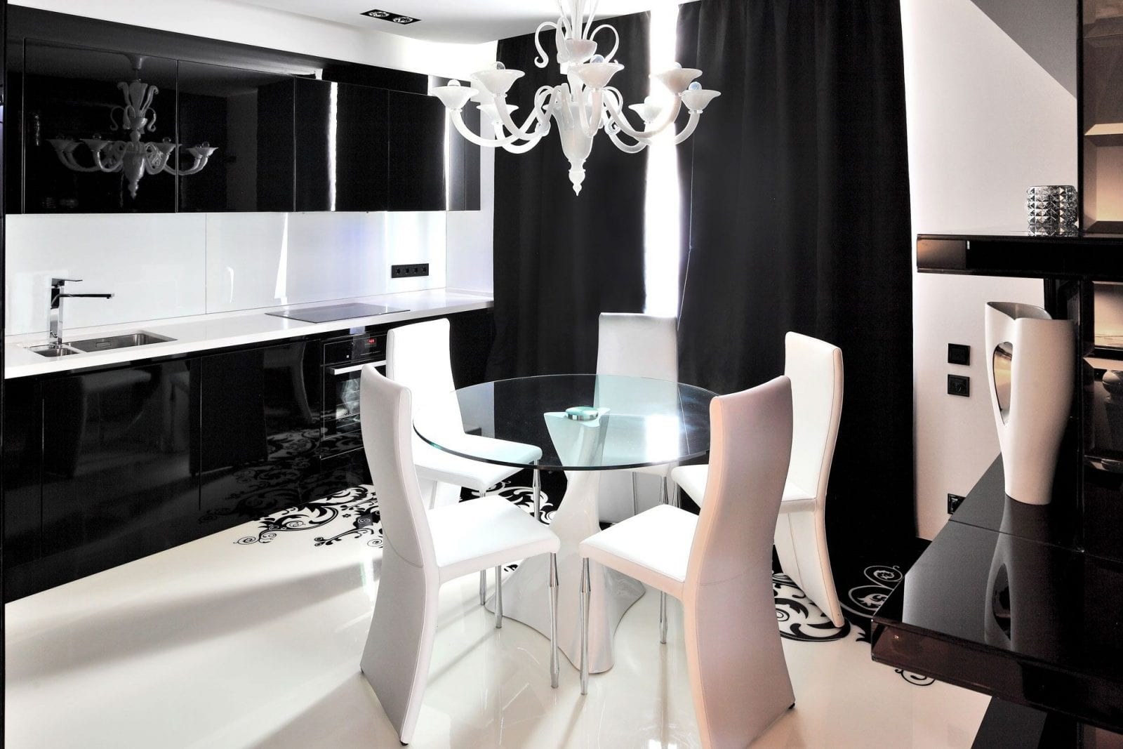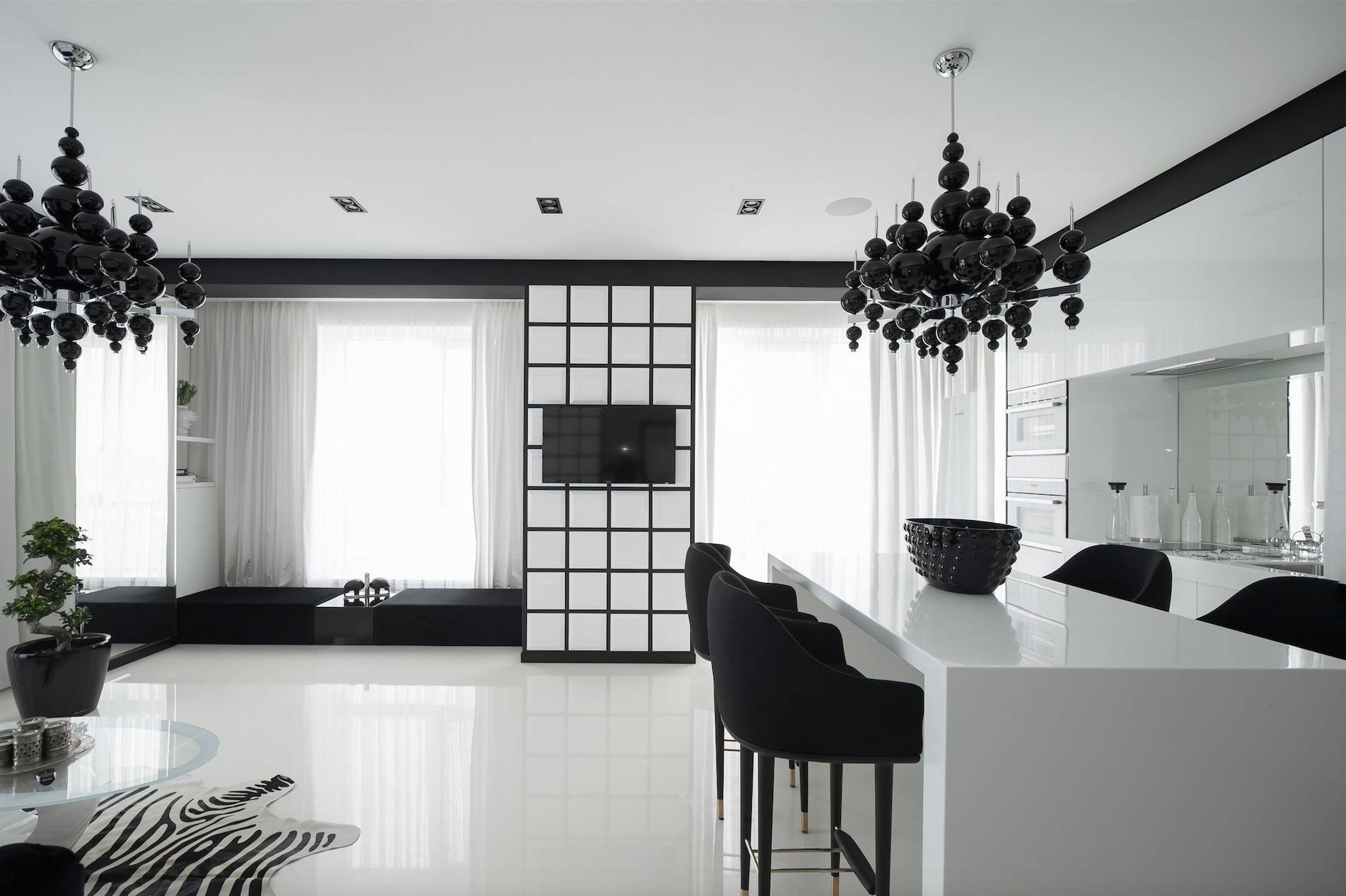 Бело-черная кухня в интерьере
