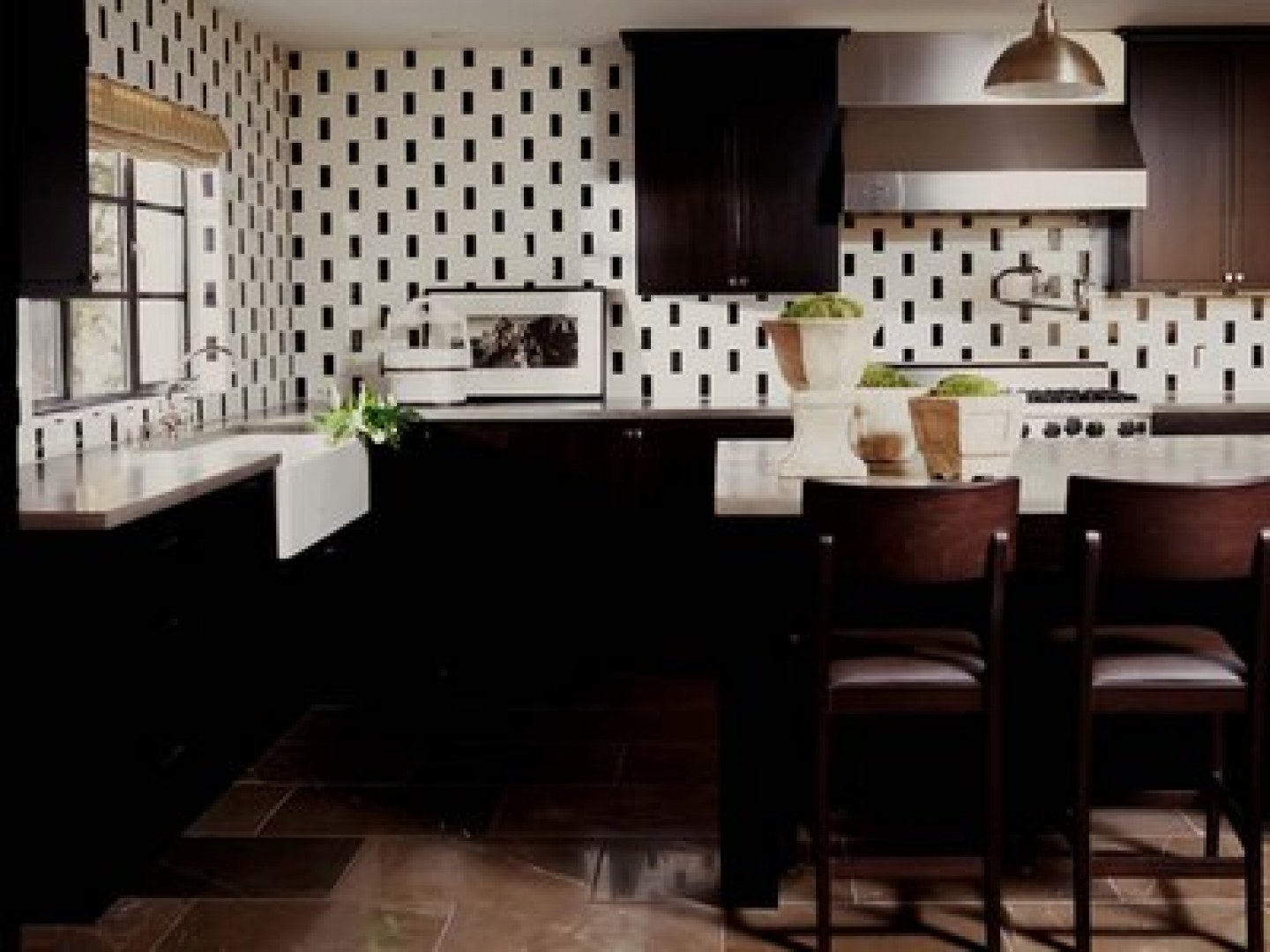 Темные обои на кухне