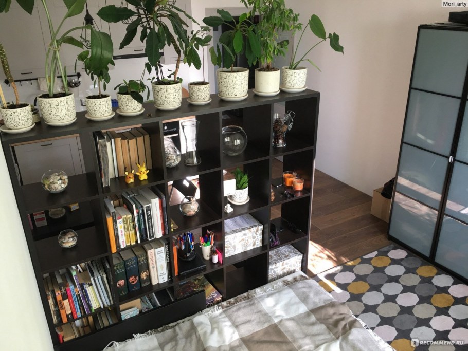 Стеллаж -перегородка для комнаты-уютный интерьер