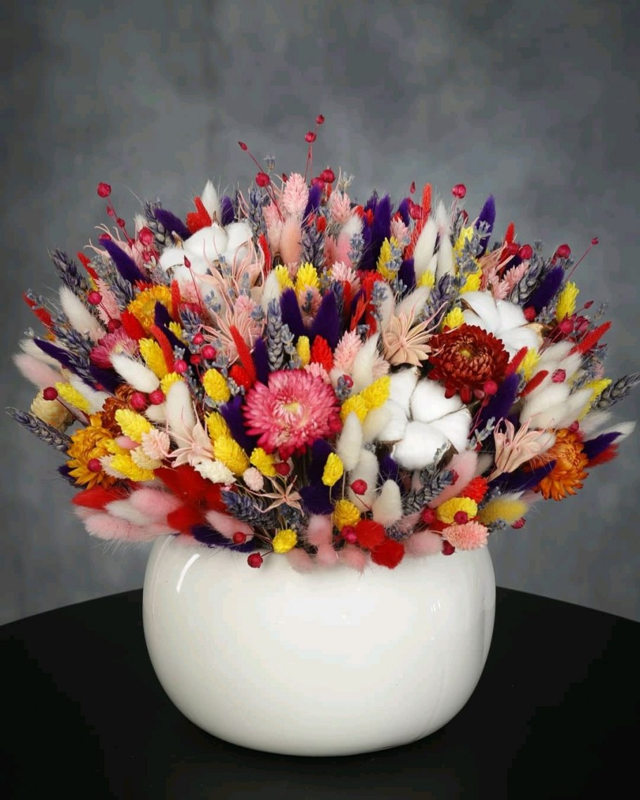 Композиции из сухоцветов и стабилизированных цветов