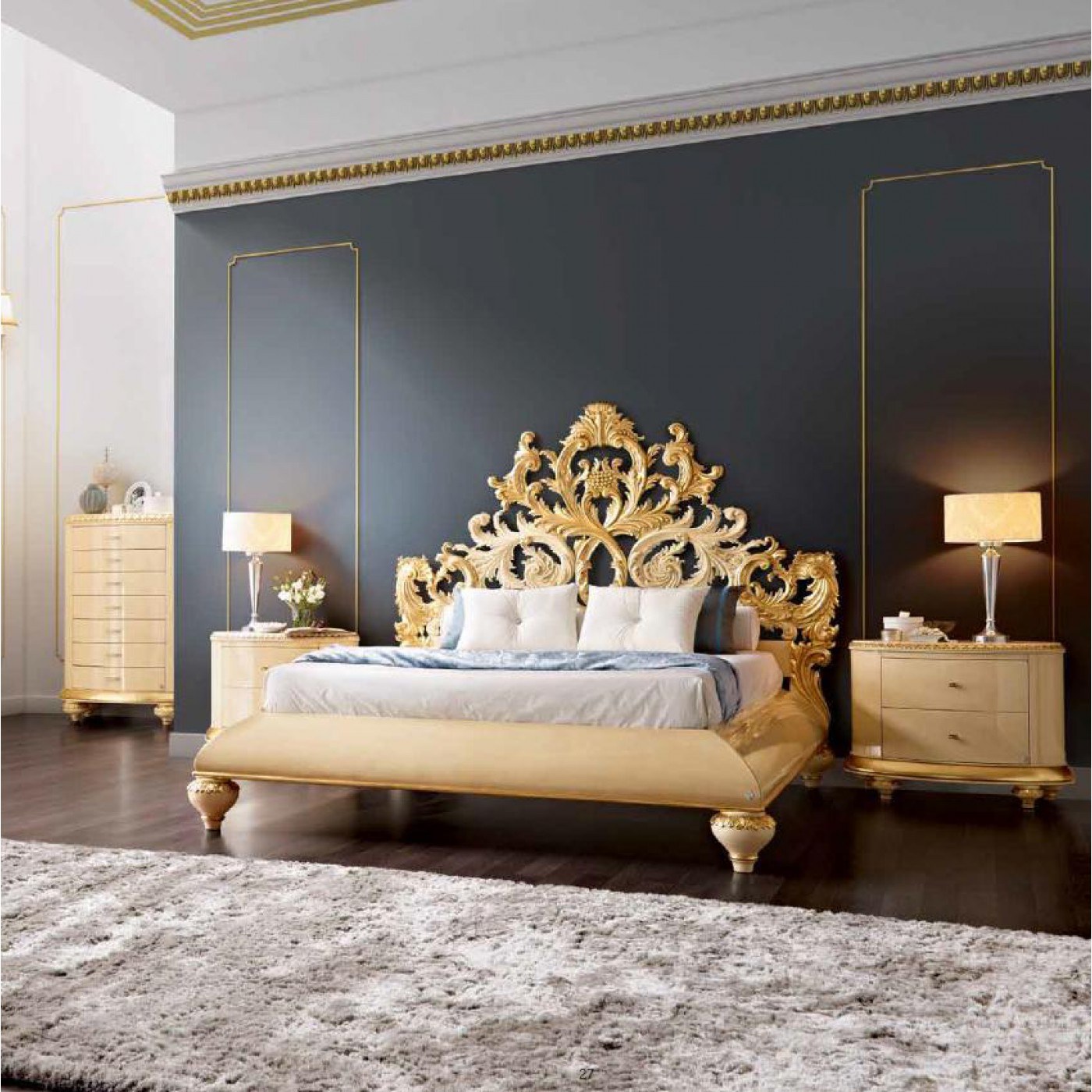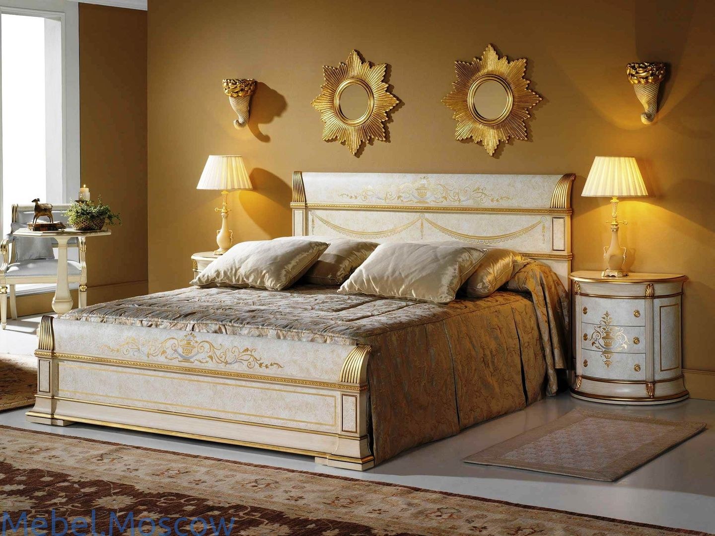 Кровать с золотым изголовьем