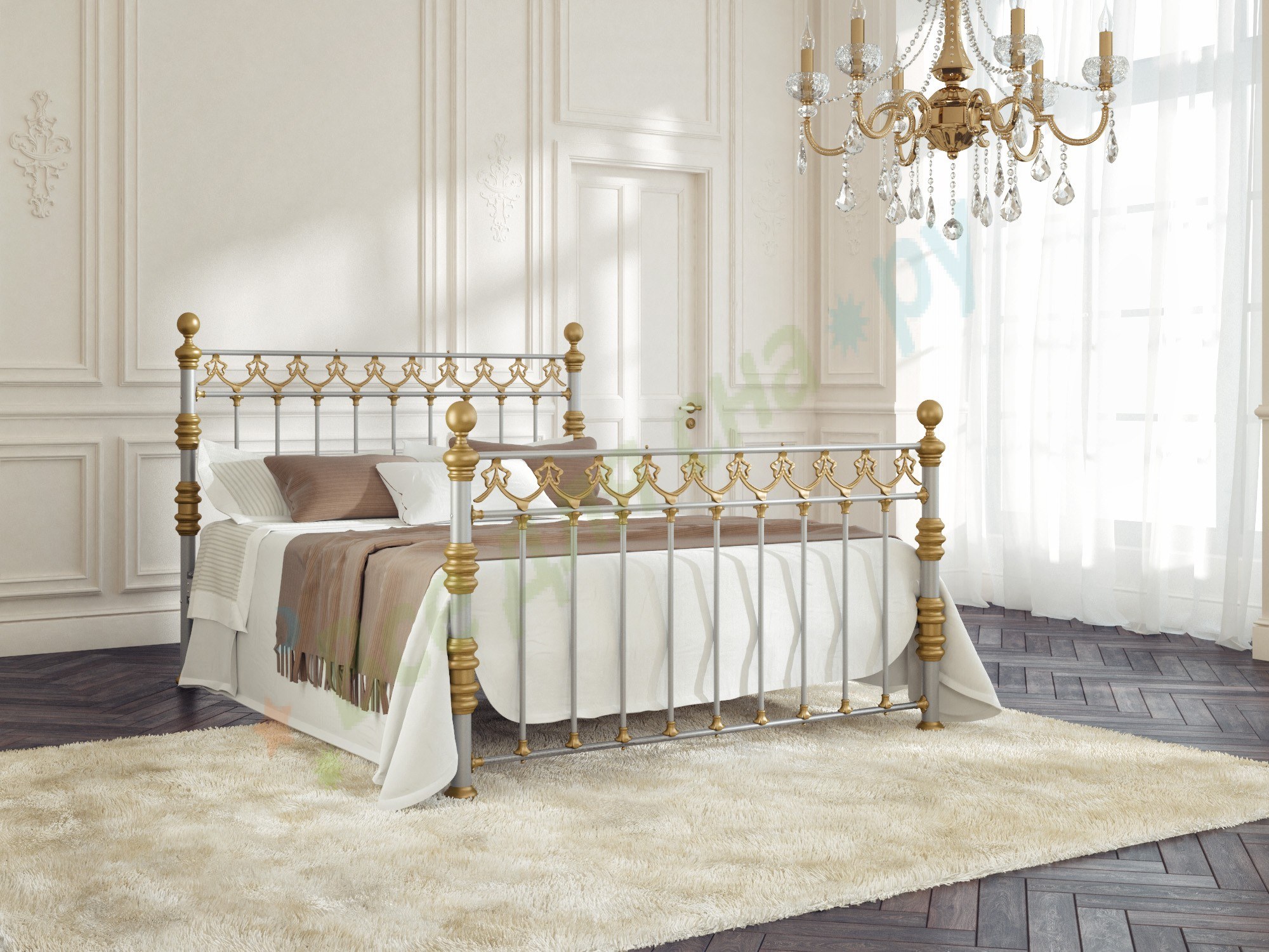 Кованые кровати белые с золотистой патиной