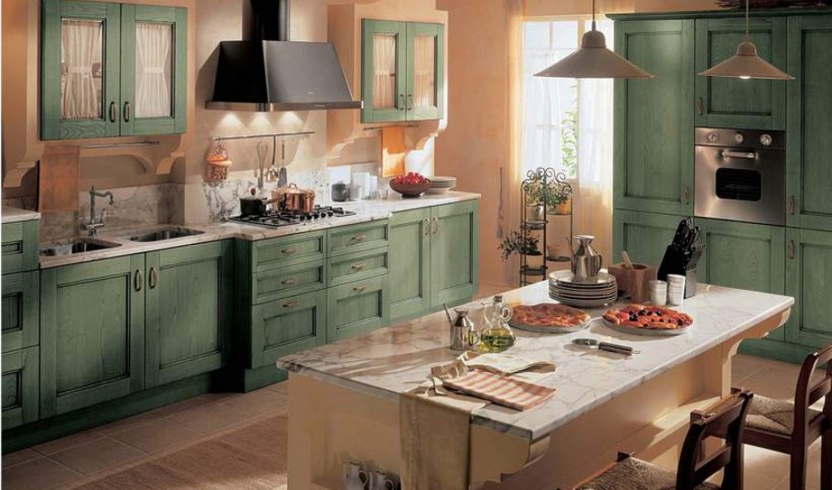 Кухонный гарнитур фисташкового цвета с другими цветами