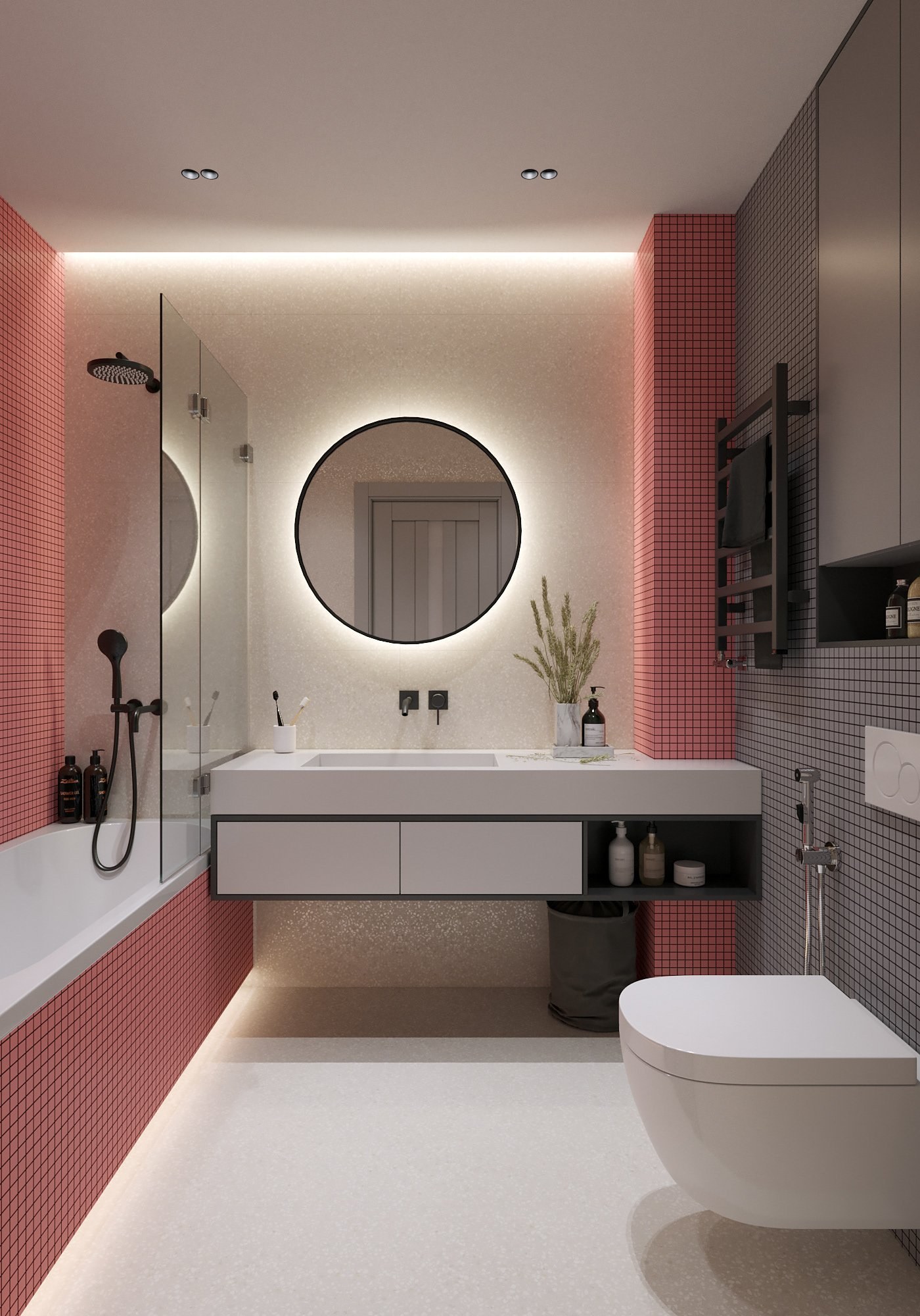 Стильная ванная комната с душевой