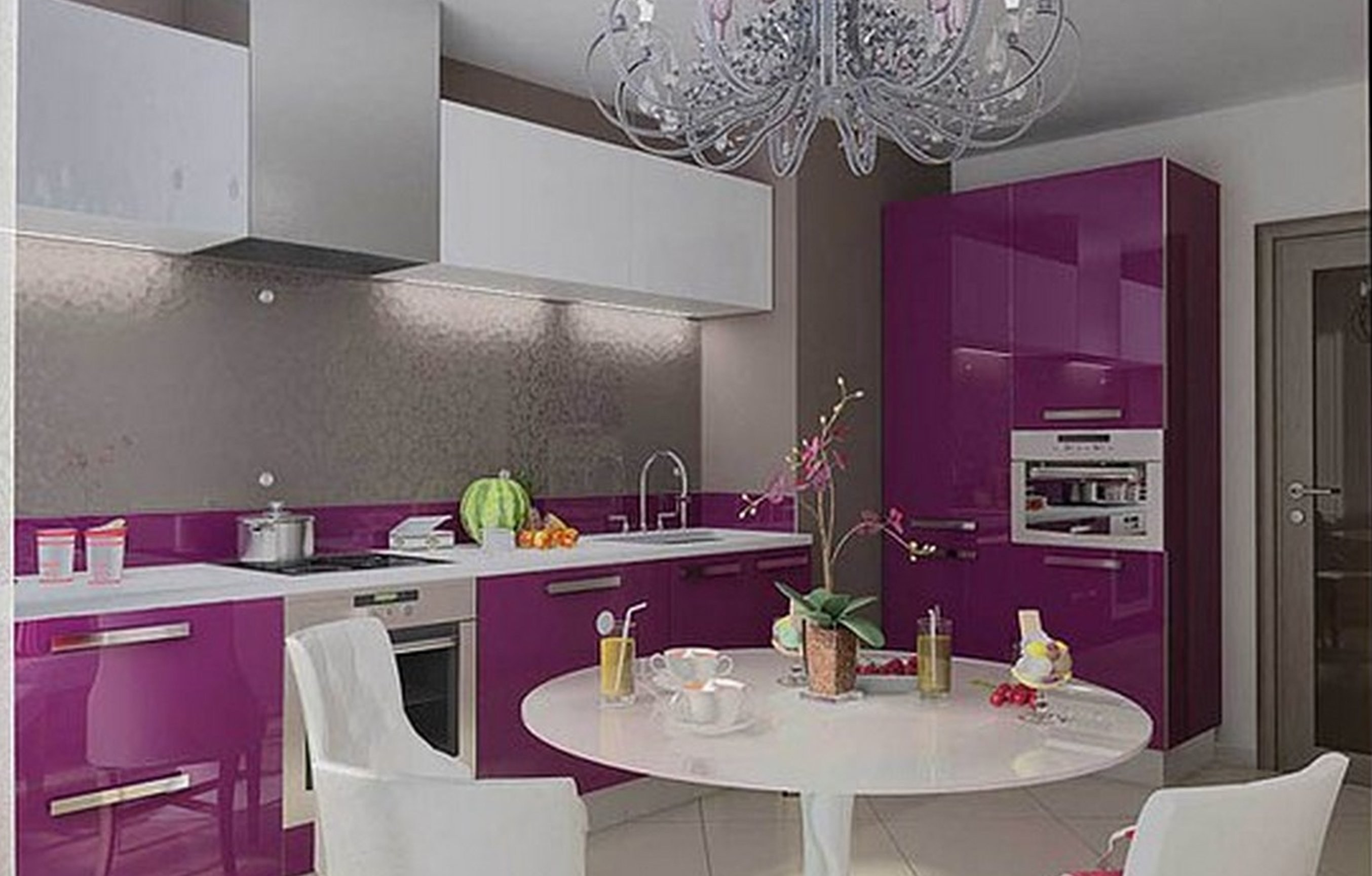 Интерьер кухни в сиреневых тонах