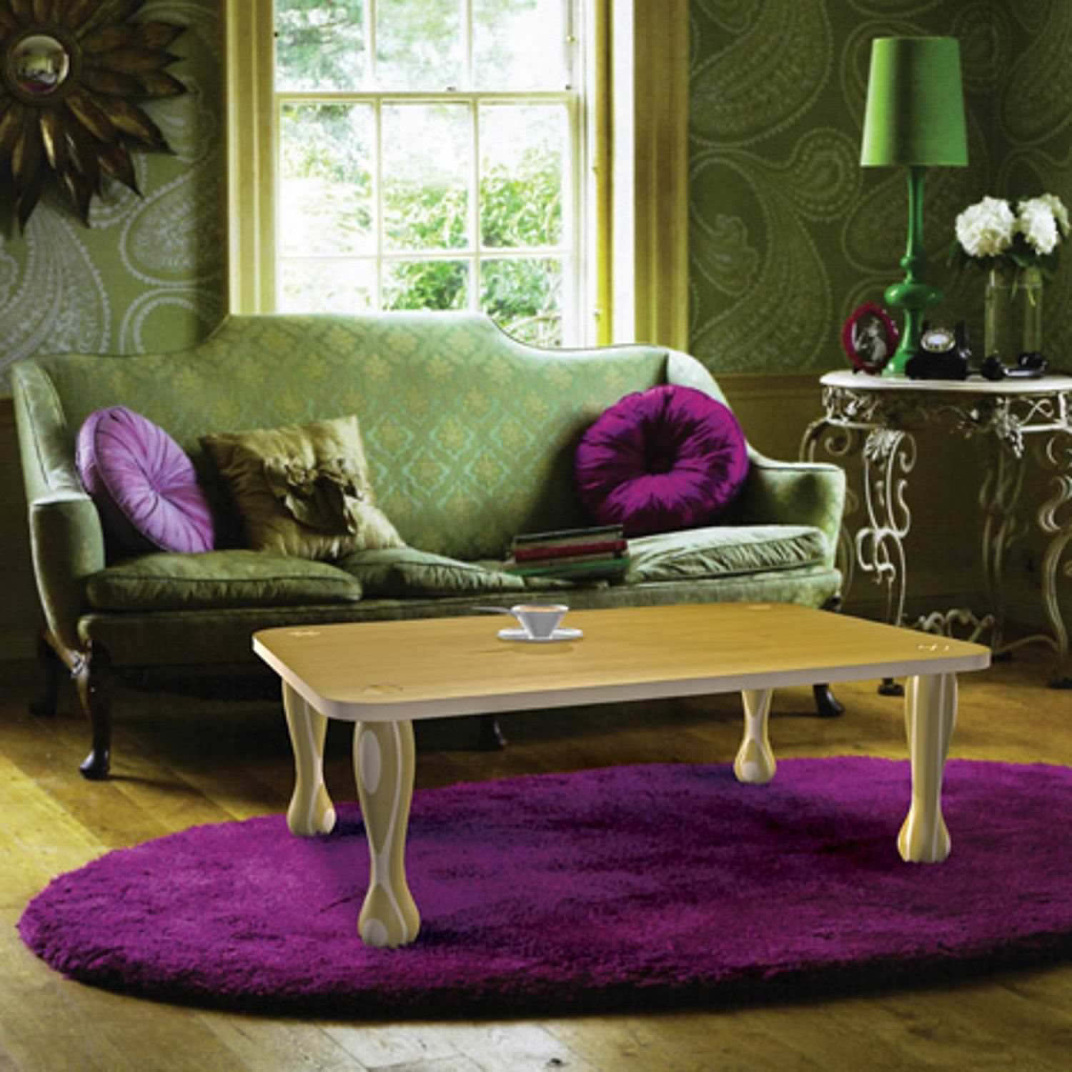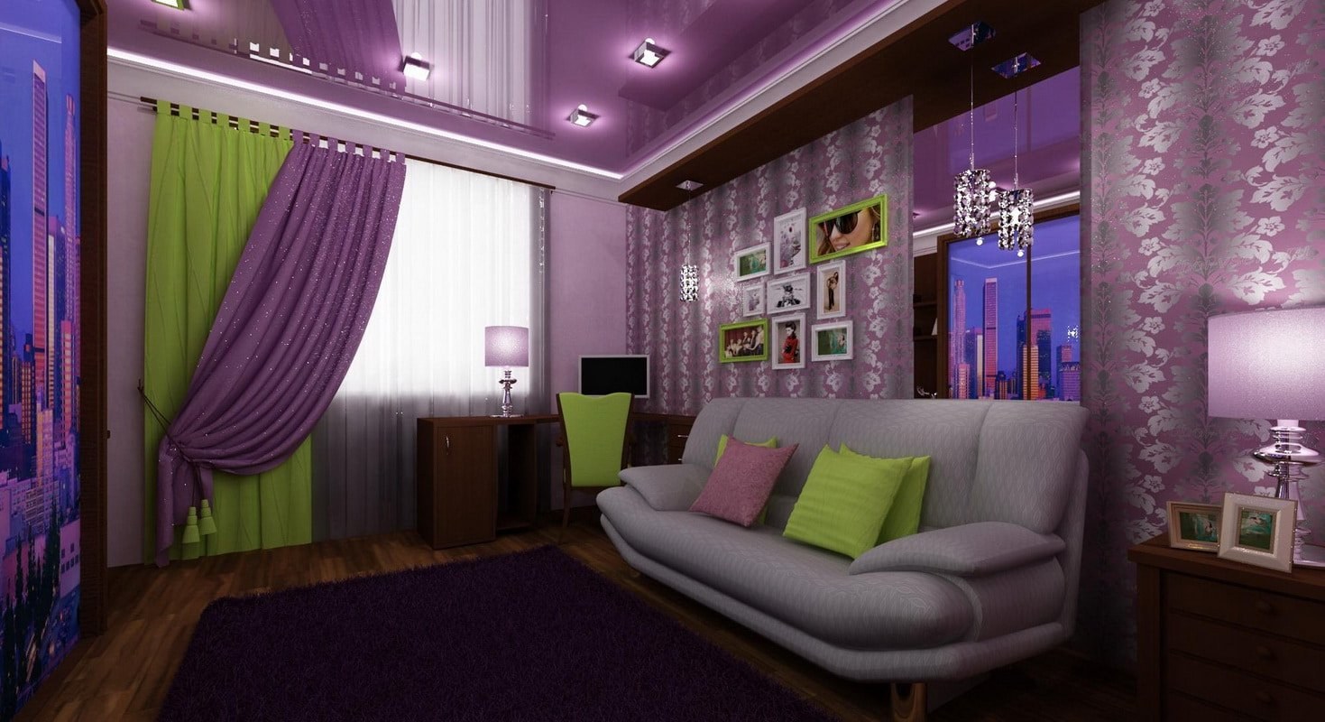 Сиреневый и зеленый в интерьере гостиной