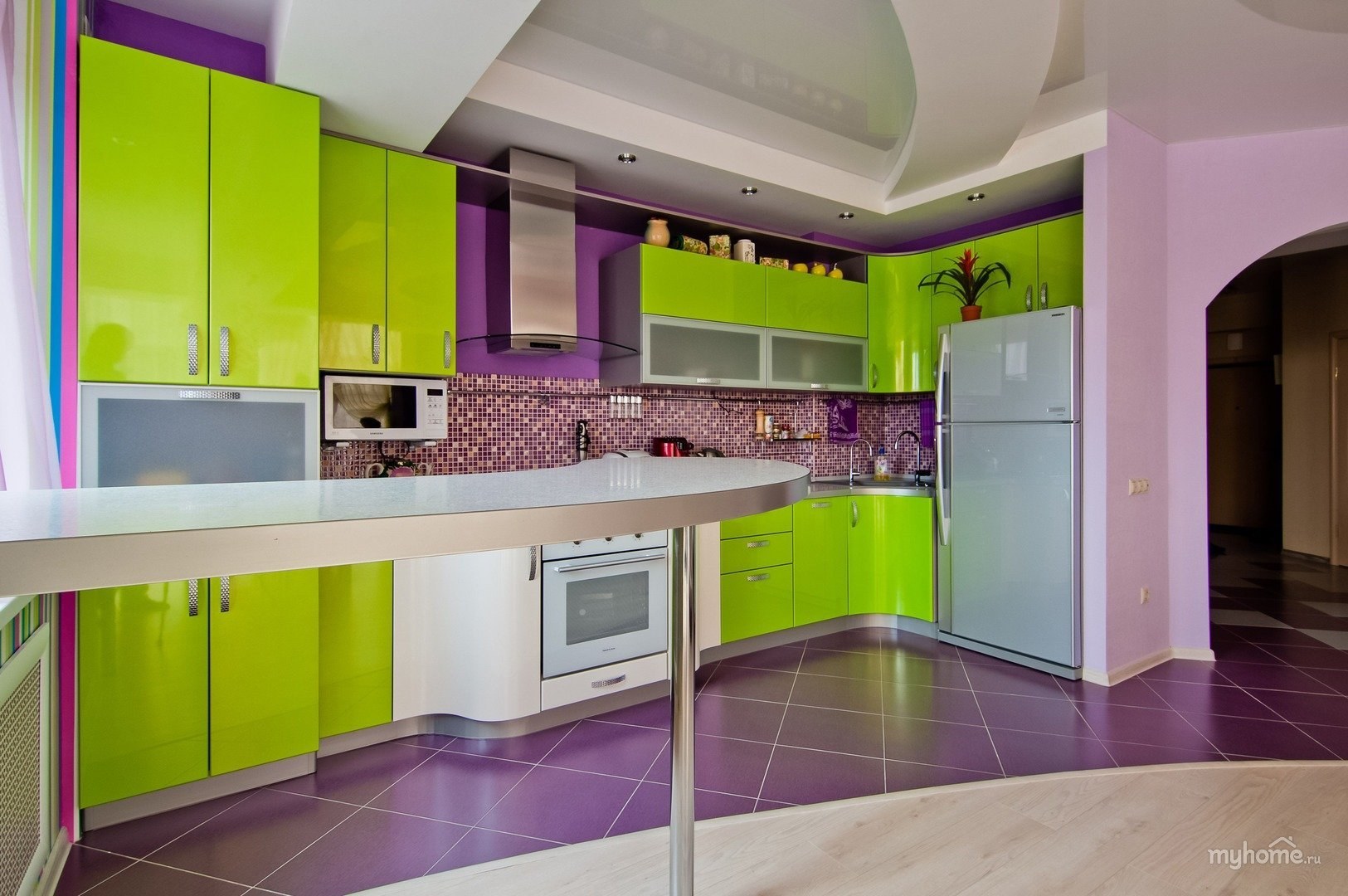 Фиолетово зеленая кухня