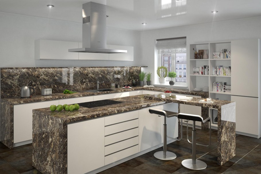 Столешница королевский опал темный в интерьере кухни (41 фото)