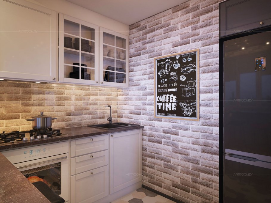 Отделка кухни под кирпич
