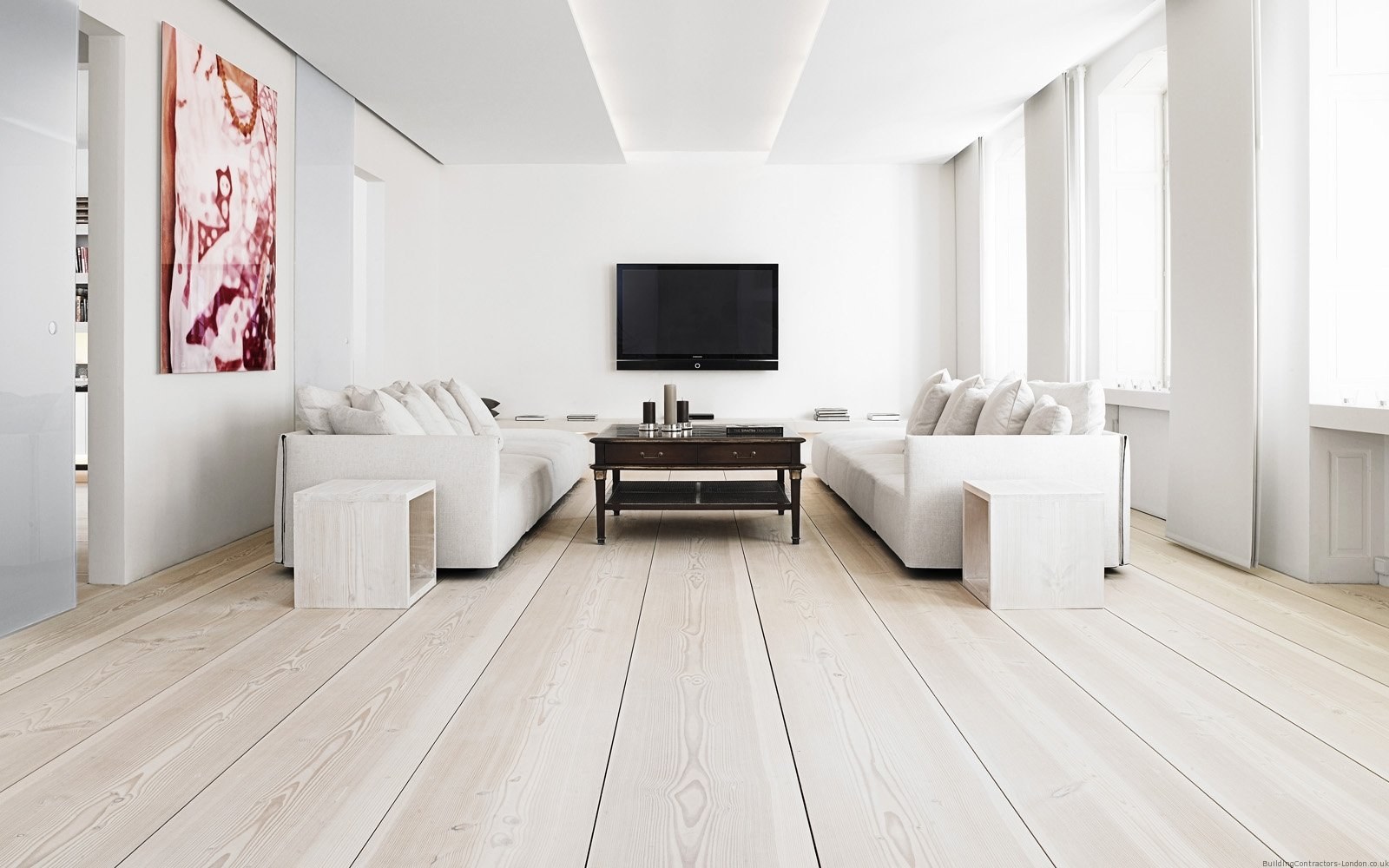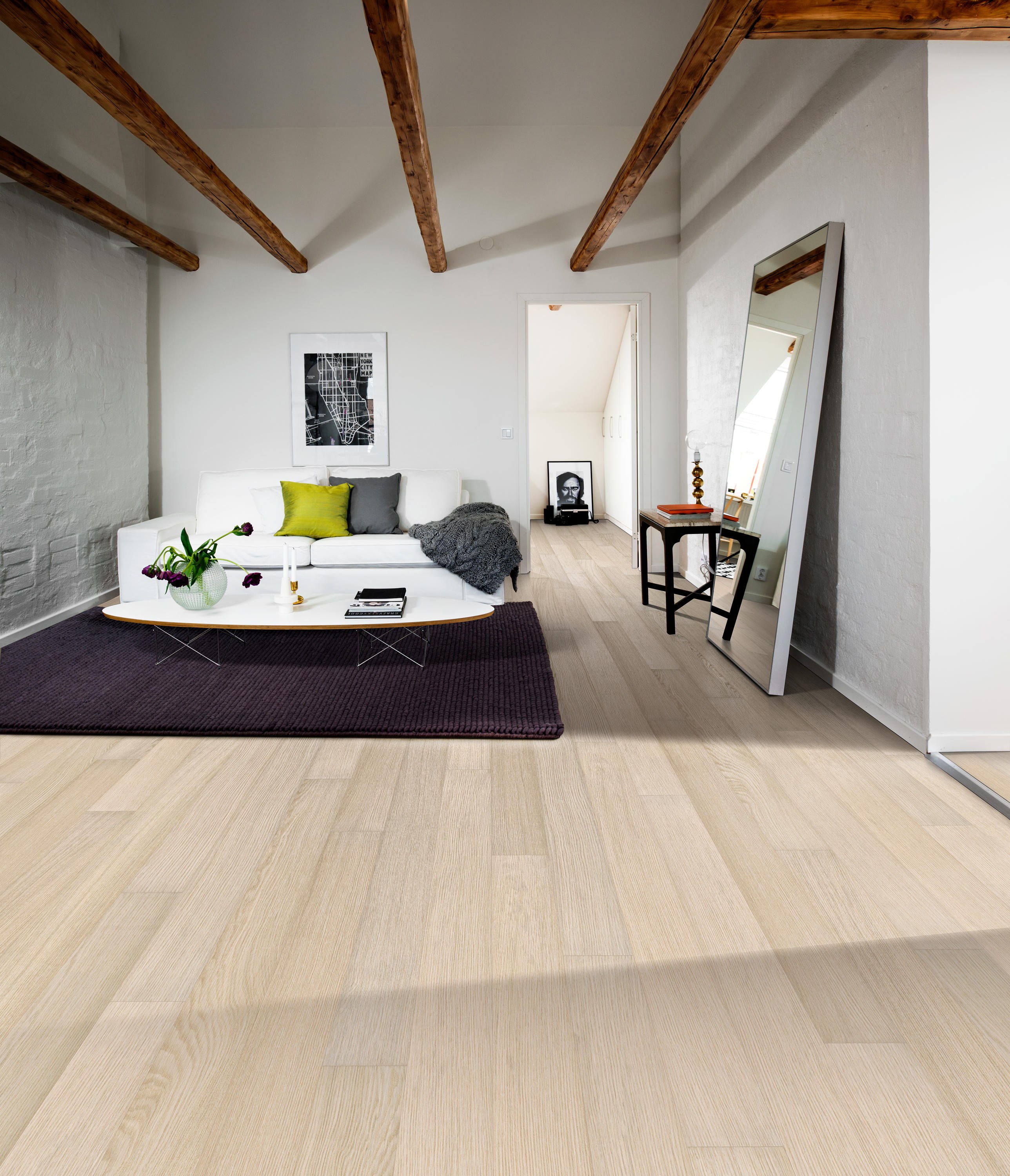 Пол беленый дуб в интерьере