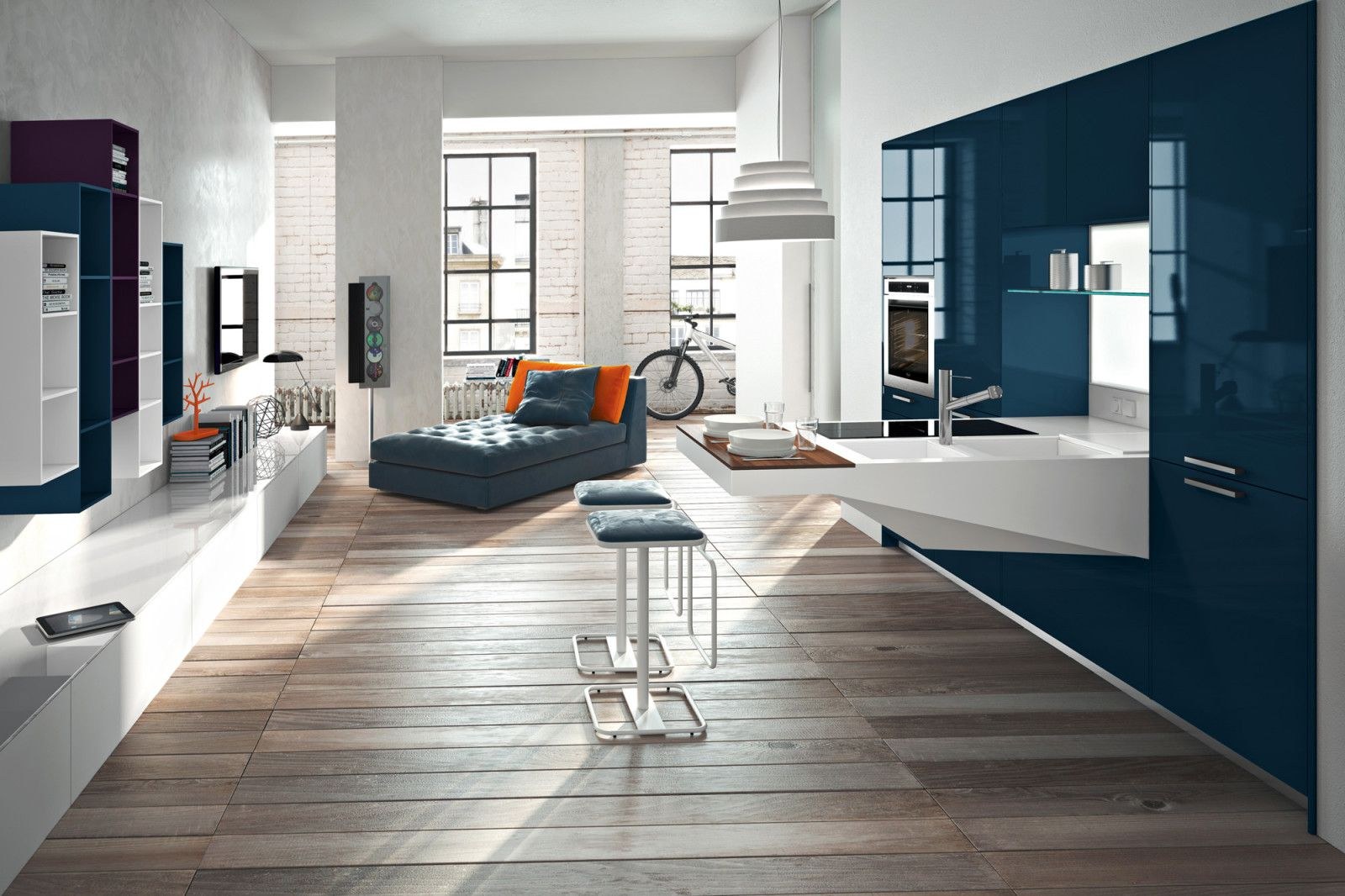 Голубой пол в интерьере