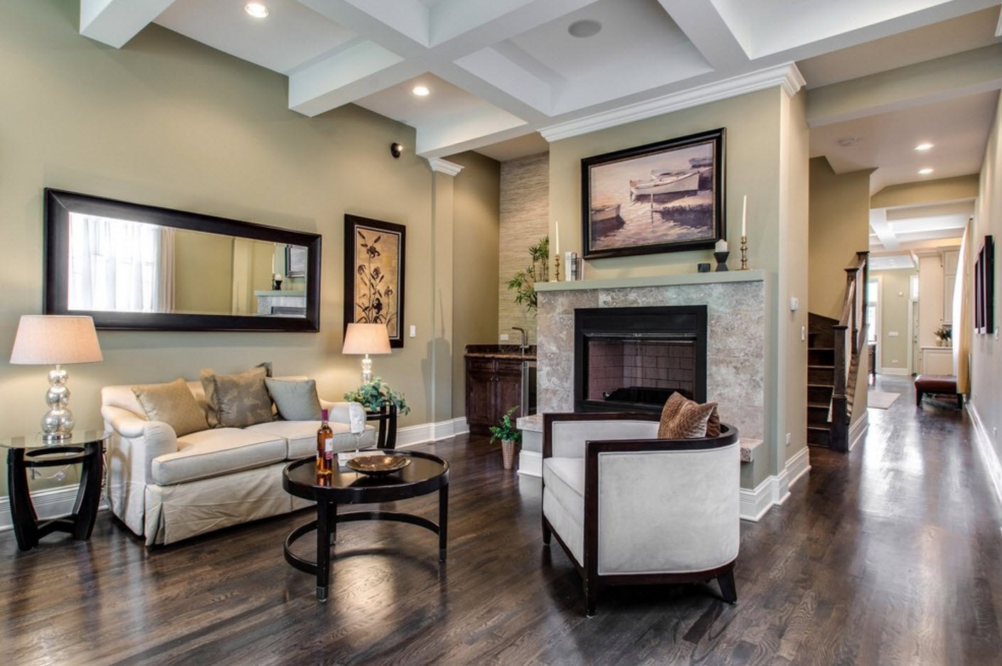 Интерьер квартиры с темным паркетом