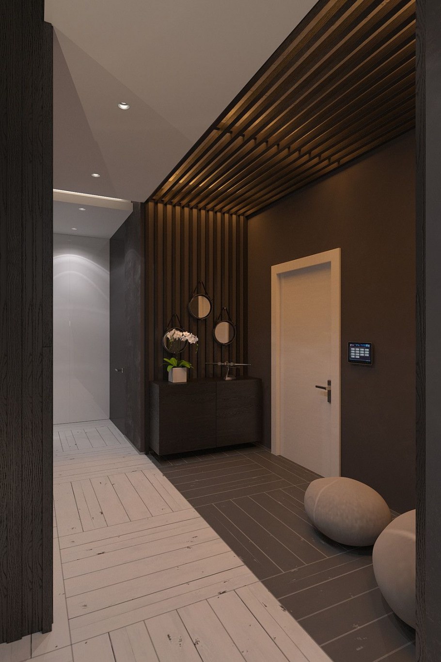Прихожая с деревянными рейками