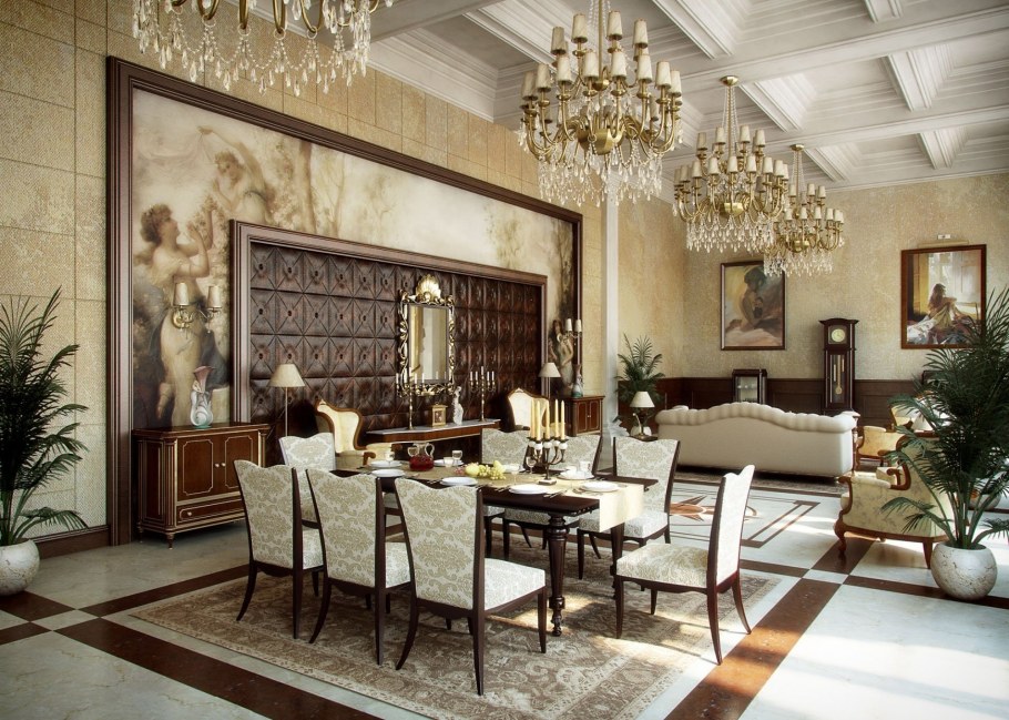 Линкруста в интерьере гостиной в стиле Неоклассика