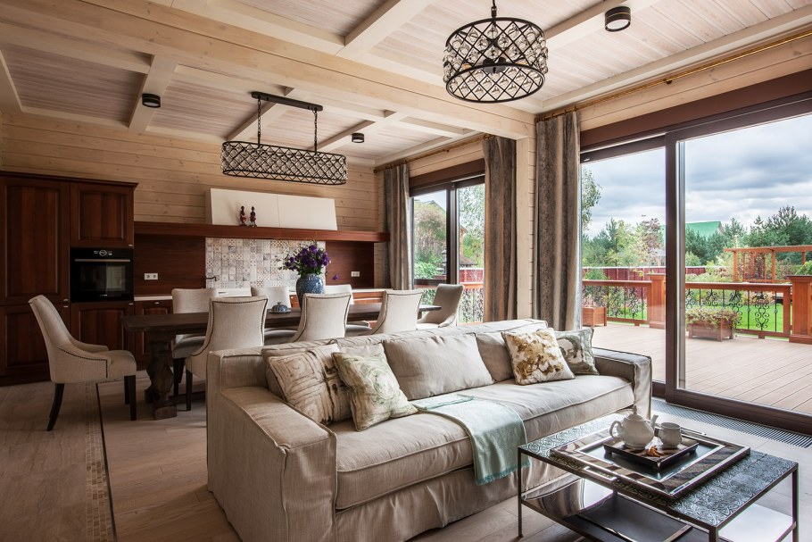 Гостиная в бревенчатом доме в стиле Прованс