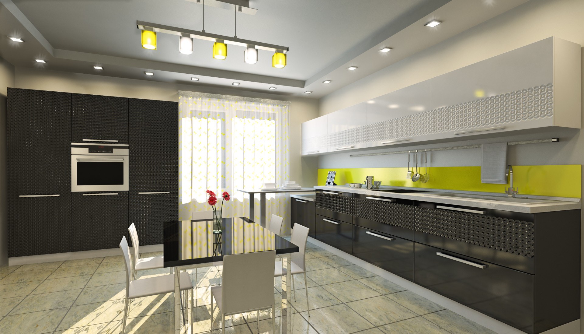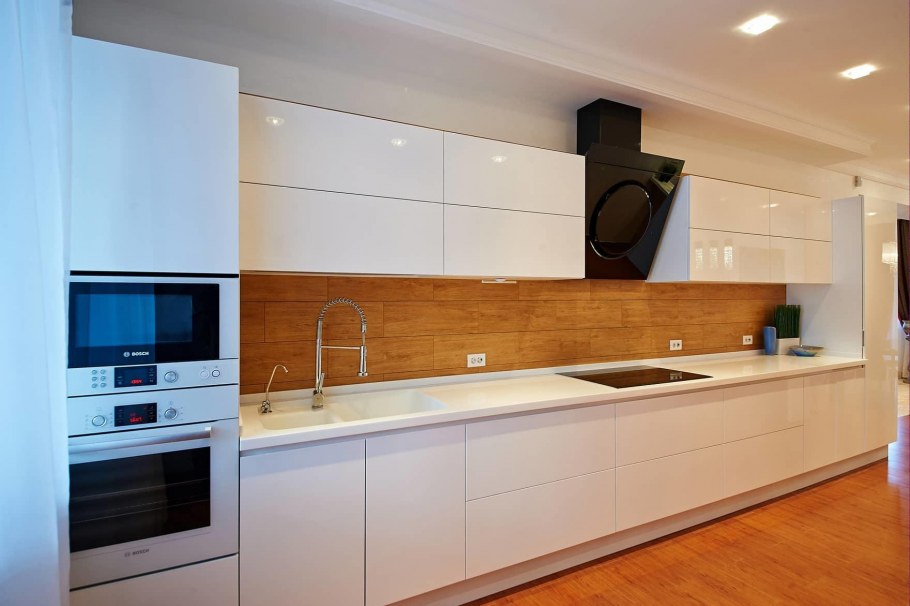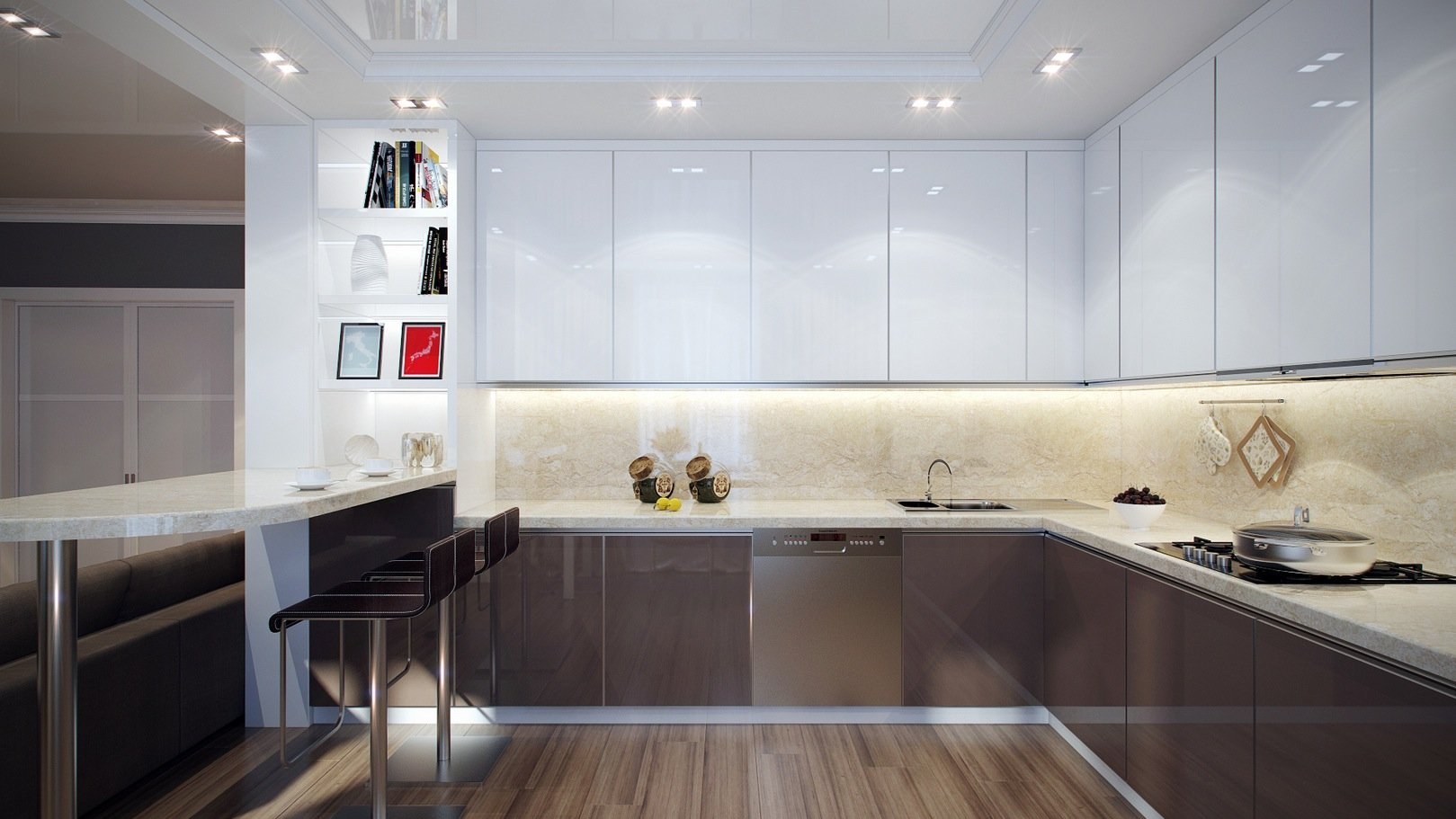 Глянцевая кухня сделанная прямо дизайн таких кухонь (42 фото)