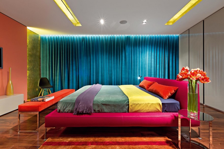 Спальня в ярких тонах