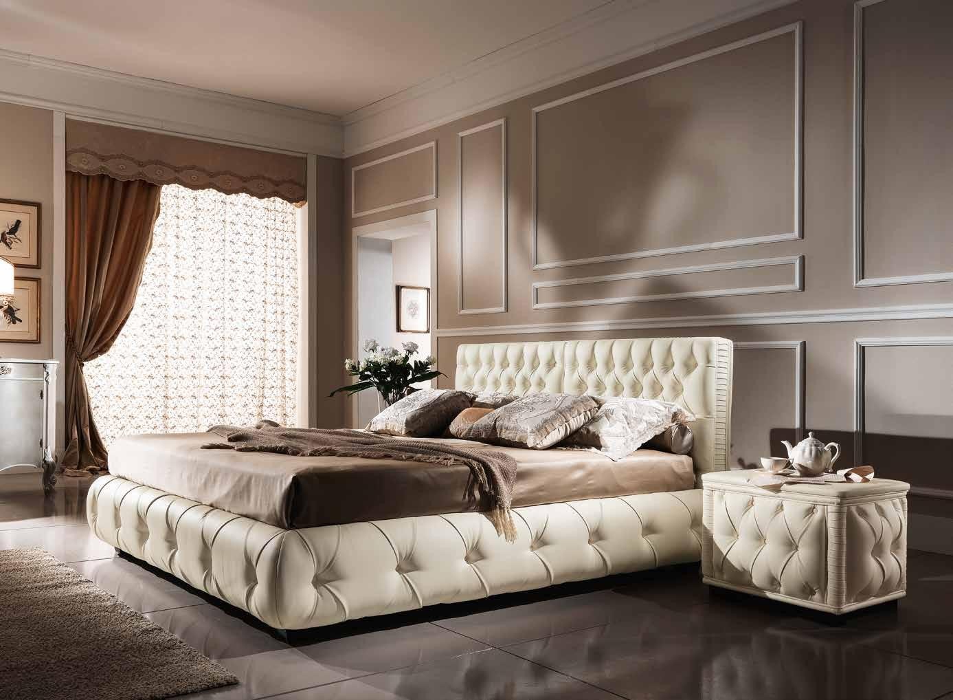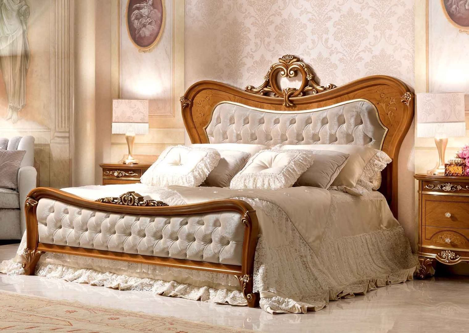 Кровать двуспальная классического стиля в ткани (38 фото)