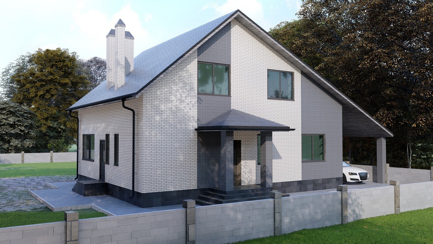 Коттедж из белого кирпича