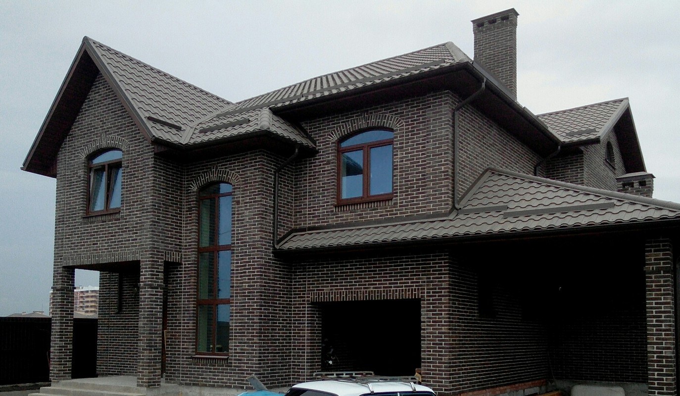 Фасад из коричневого кирпича