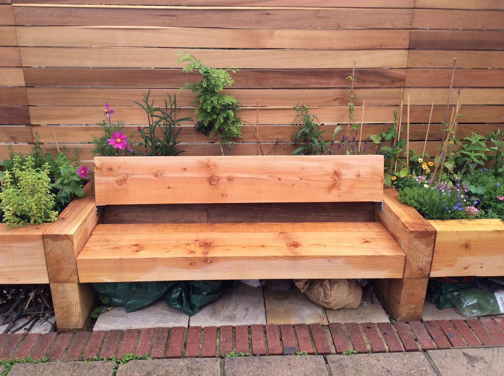 Скамейка с цветником