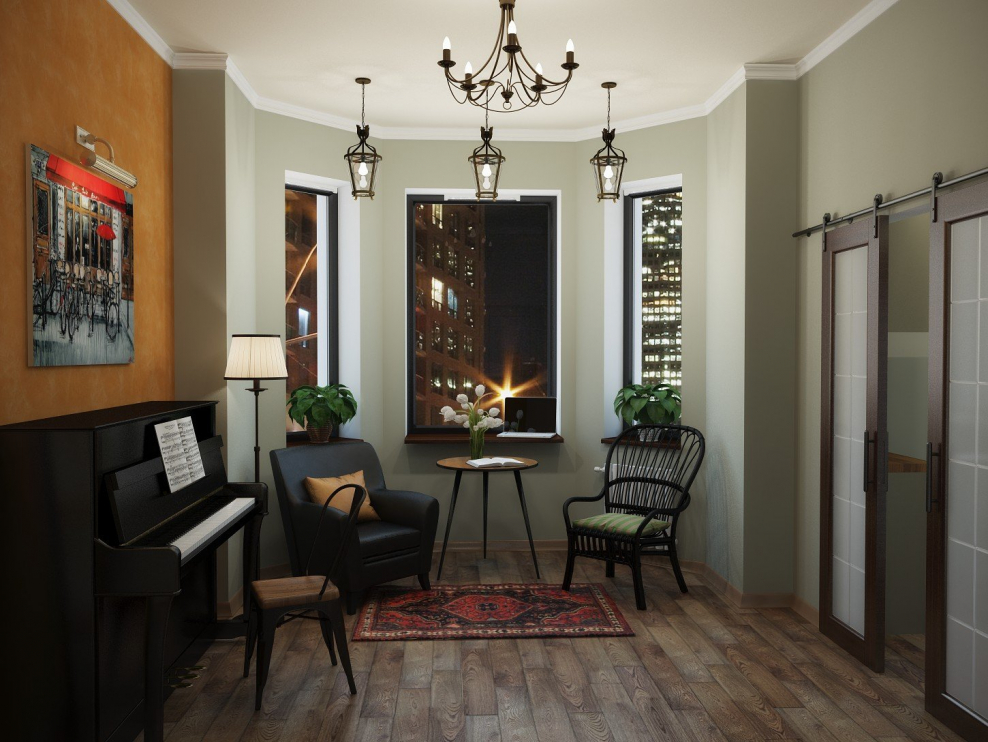 Интерьер студии с двумя окнами