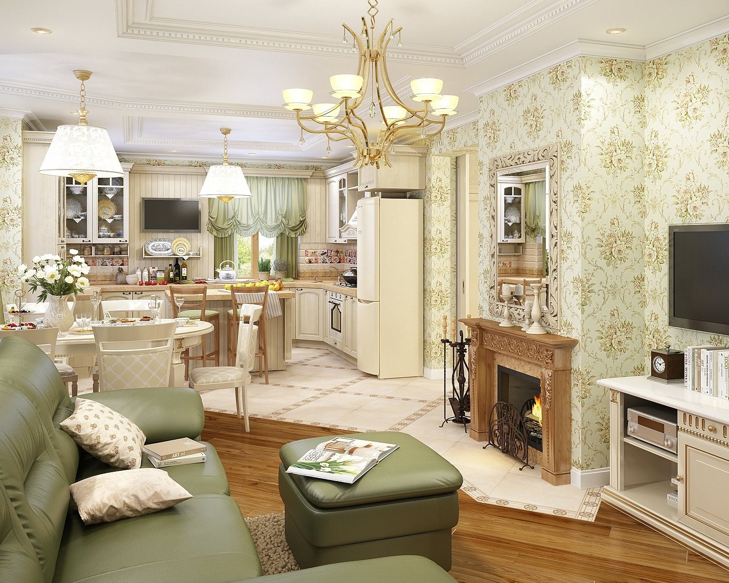 Кухня-гостиная 20 кв.м в стиле Прованс