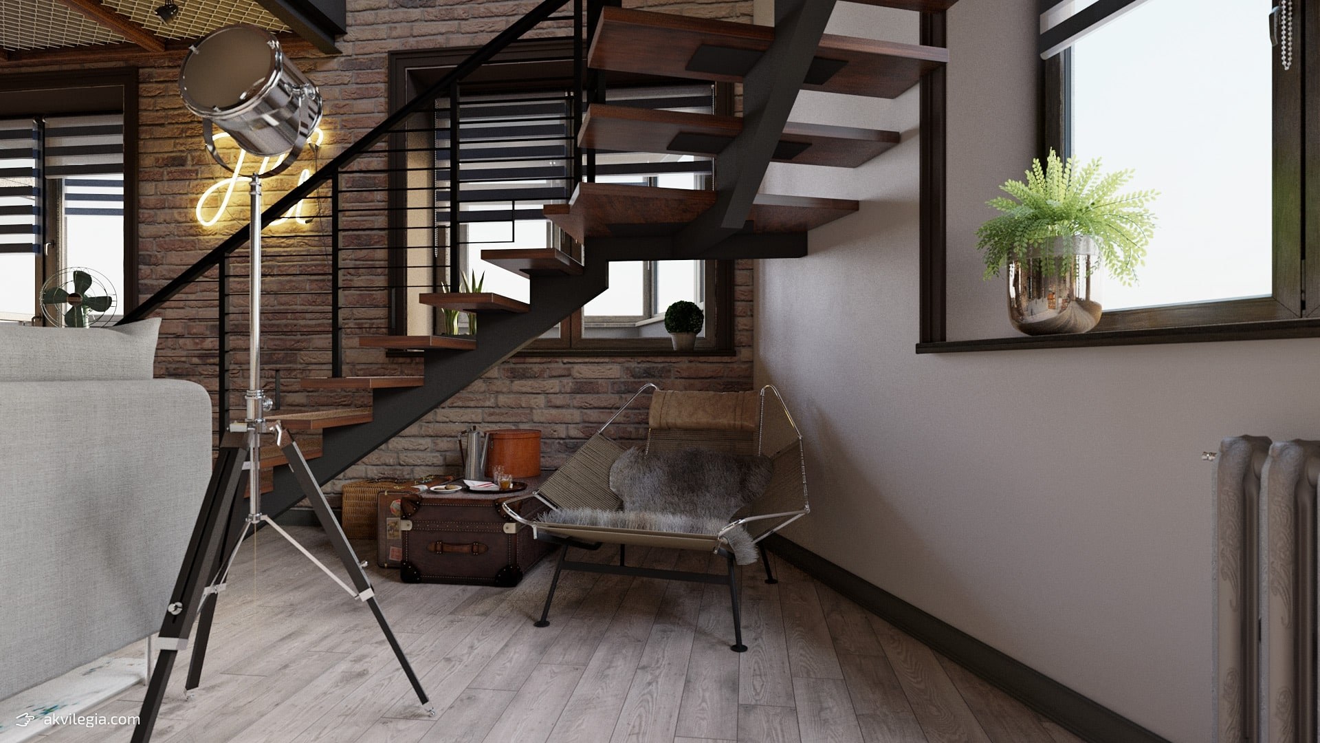 Лестница в квартире в стиле лофт