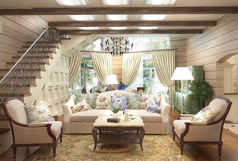 Интерьер домов из клееного бруса во французском стиле