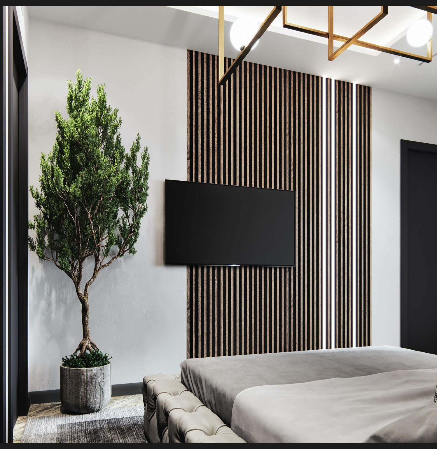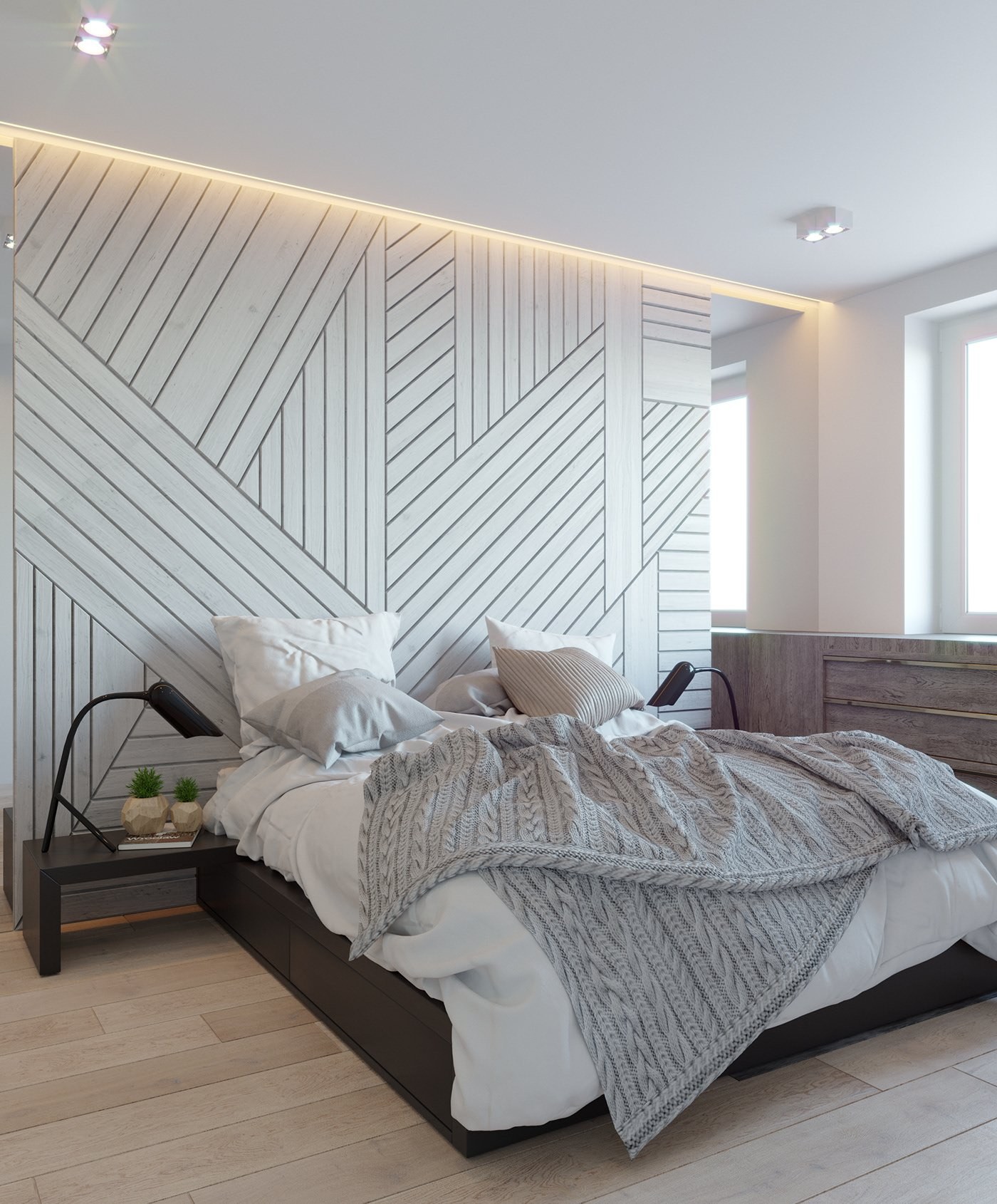 Деревянные рейки в спальне